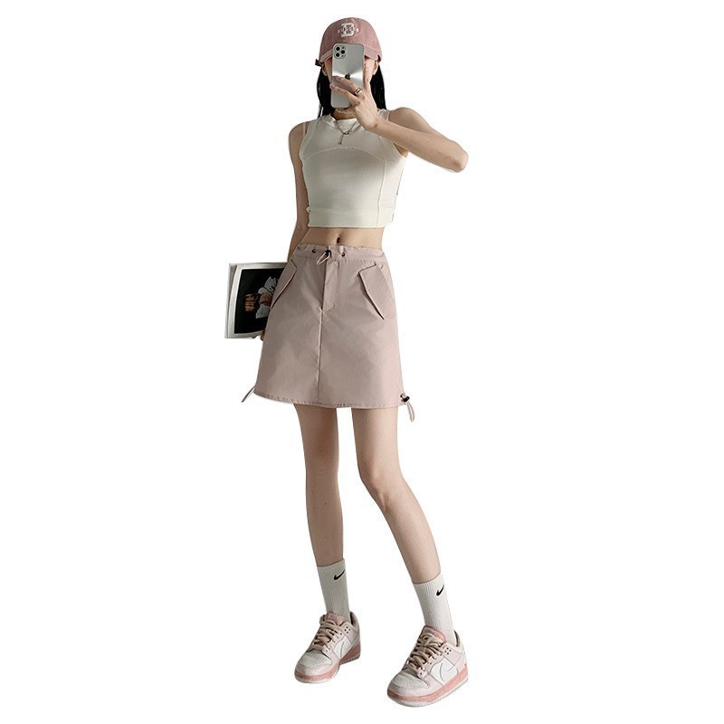 粉色工作短裙女夏季薄款24新款美式速干a字包臀裙辣妹显瘦半身裙