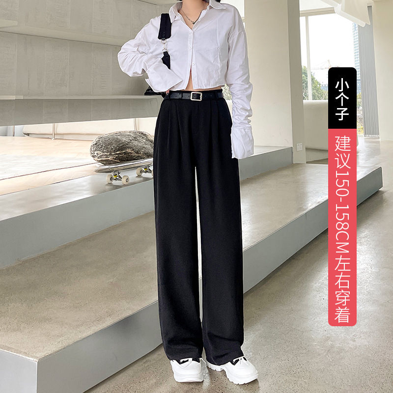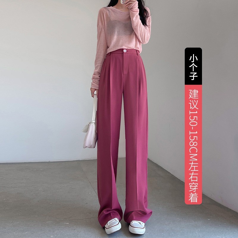 网文西装裤垂坠感裤子春夏女高腰直筒拖地裤显瘦小个子窄版阔腿裤