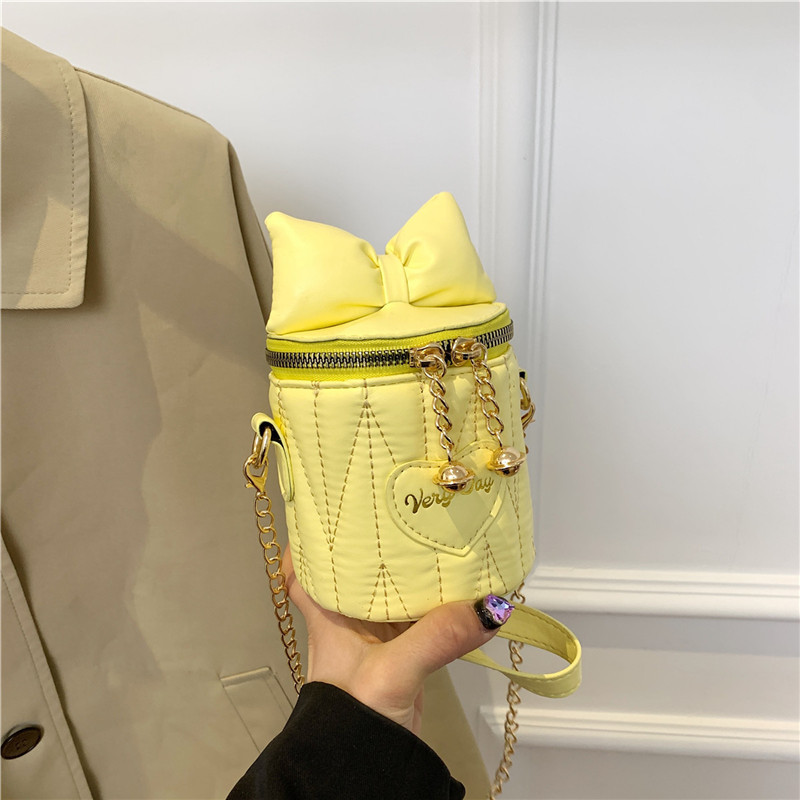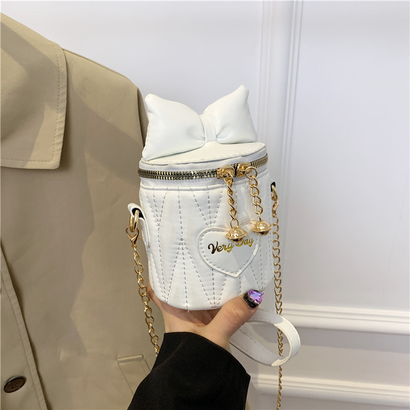 蝴蝶结时尚韩版链条单肩斜挎包包女春季新款百搭ins水桶包女