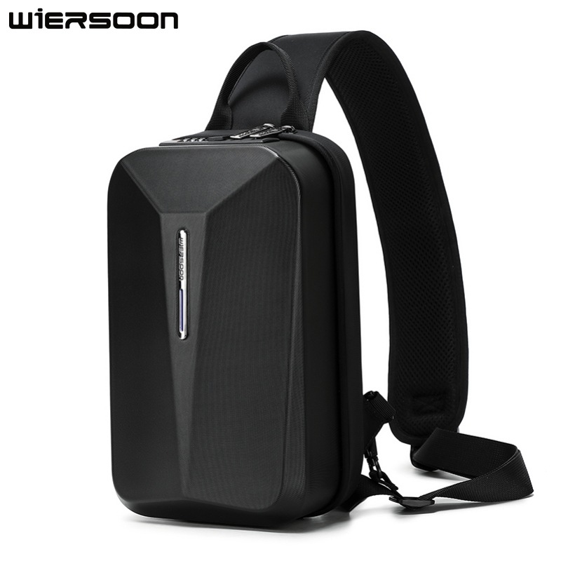 新款硬壳男士多功能防盗胸包时尚商务密码锁小背包防水出行斜挎包