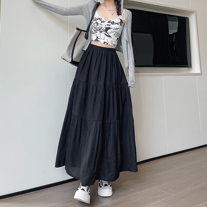 白色半身裙女春秋新款温柔高腰A字长裙显瘦夏季小个子蛋糕裙