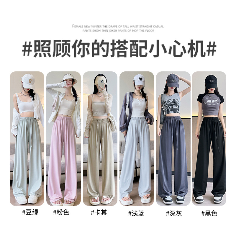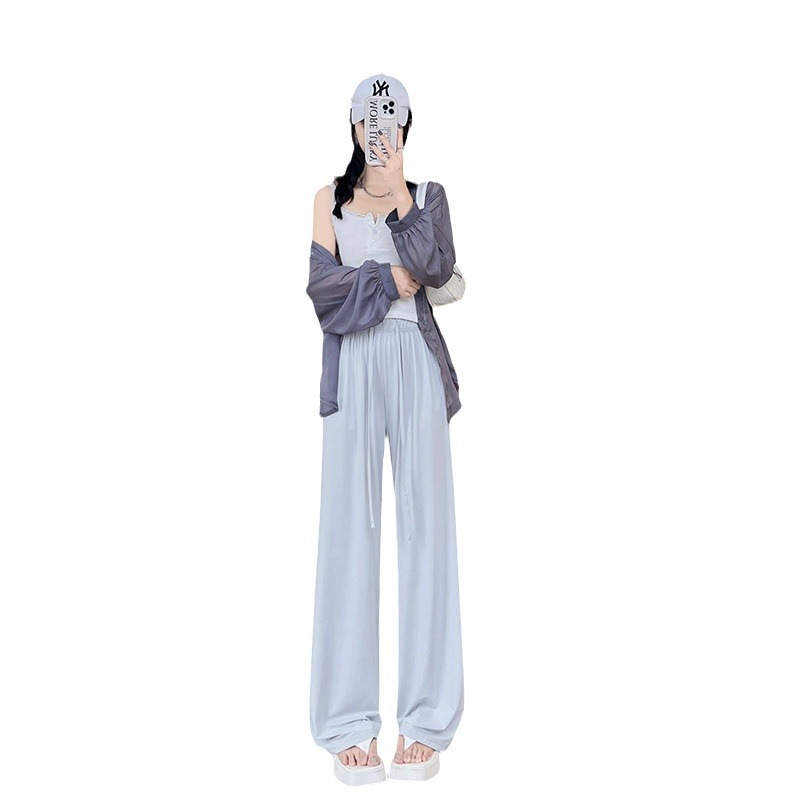 灰色防晒裤女裤夏季女新款垂感显瘦休闲直筒裤运动冰丝阔腿裤