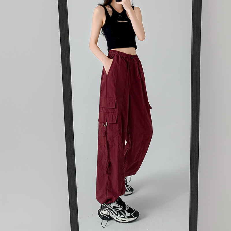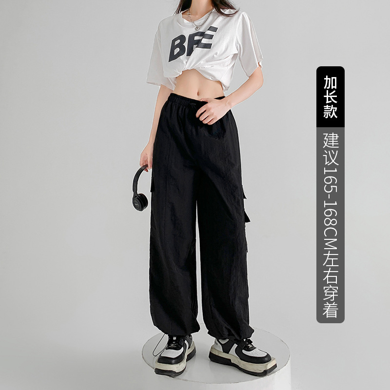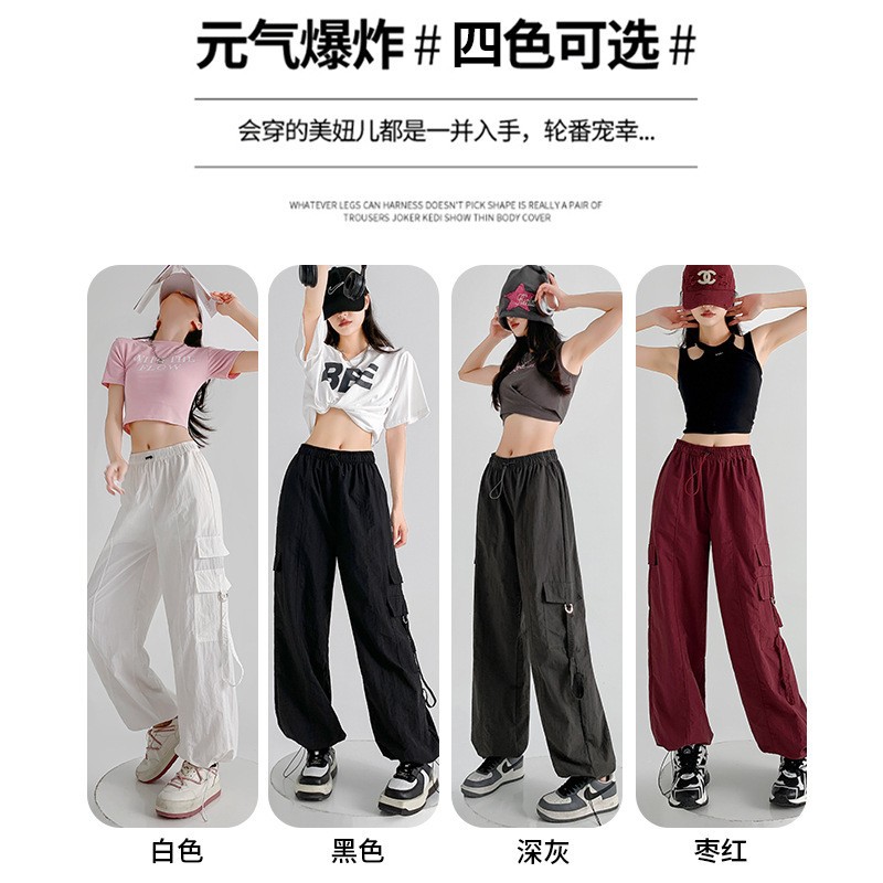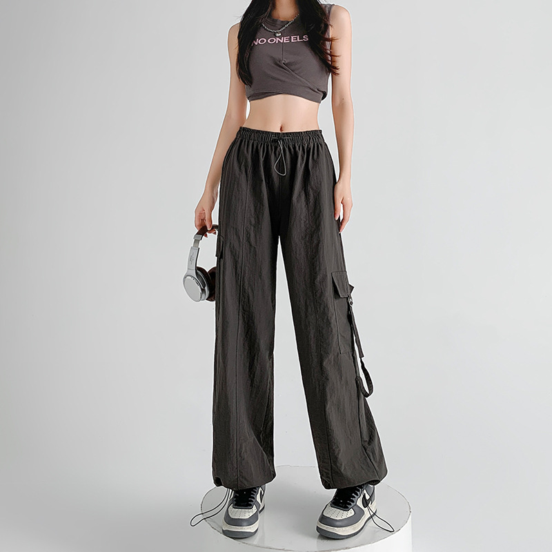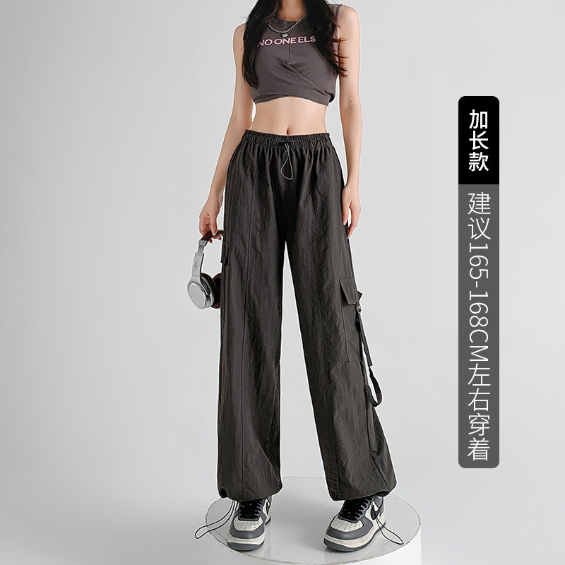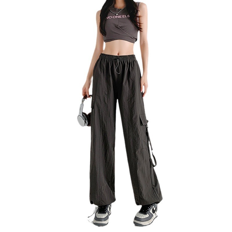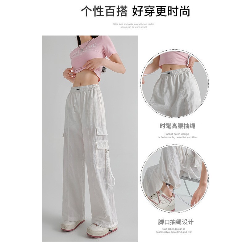 锦纶速干工装裤女装春季女新款垂感显瘦直筒裤高腰阔腿裤长裤