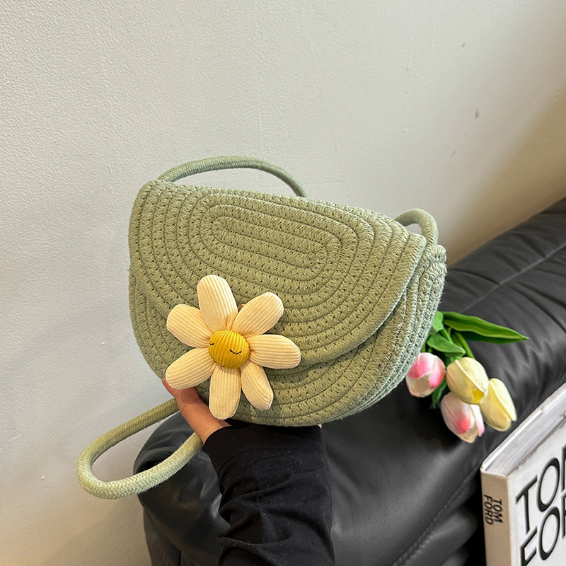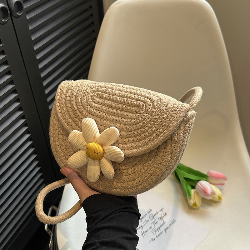 网红时尚编织花朵温柔单肩斜挎包包女包春季新款马鞍包韩版女