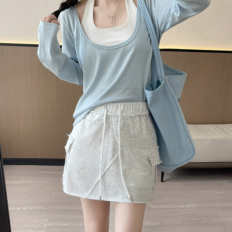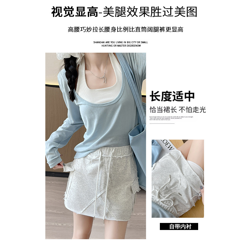 破烂风工装短裙女夏季24新款高腰a字半身裙显瘦小个子运动包臀裙