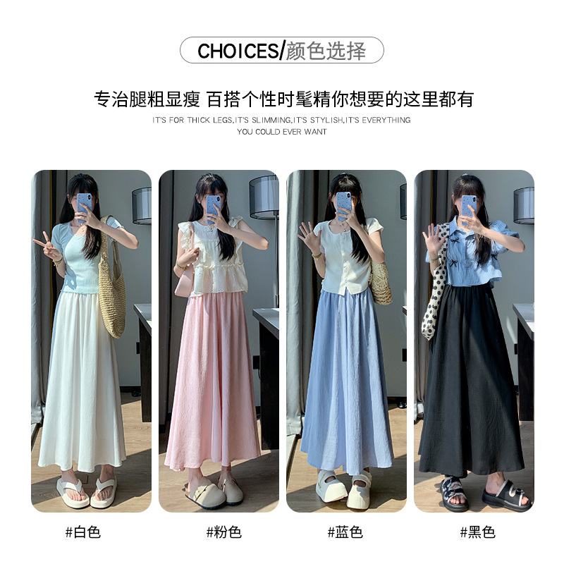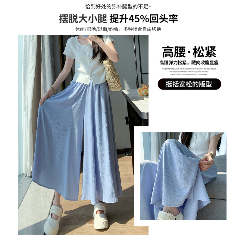 白色冰丝阔腿裤女裤夏天女裤子高腰宽松垂坠感山本裤直筒半身裙裤