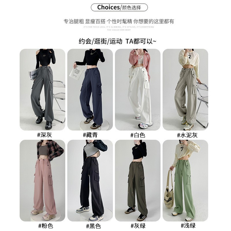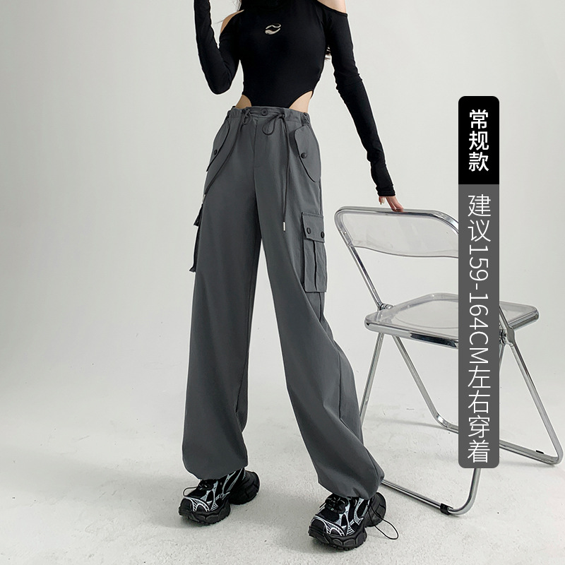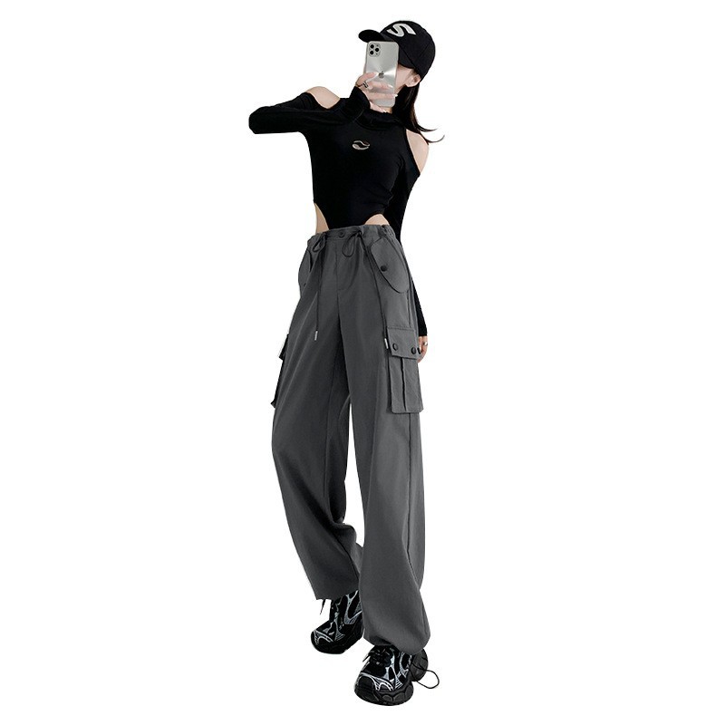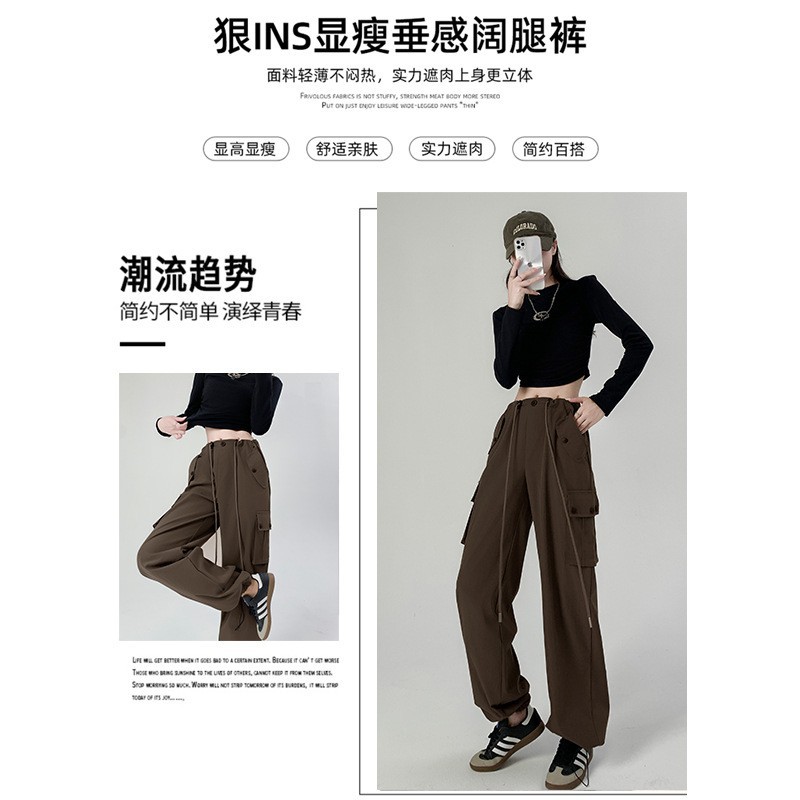 黑色工装裤女装春季女新款宽松辣妹阔腿裤显瘦休闲美式运动裤