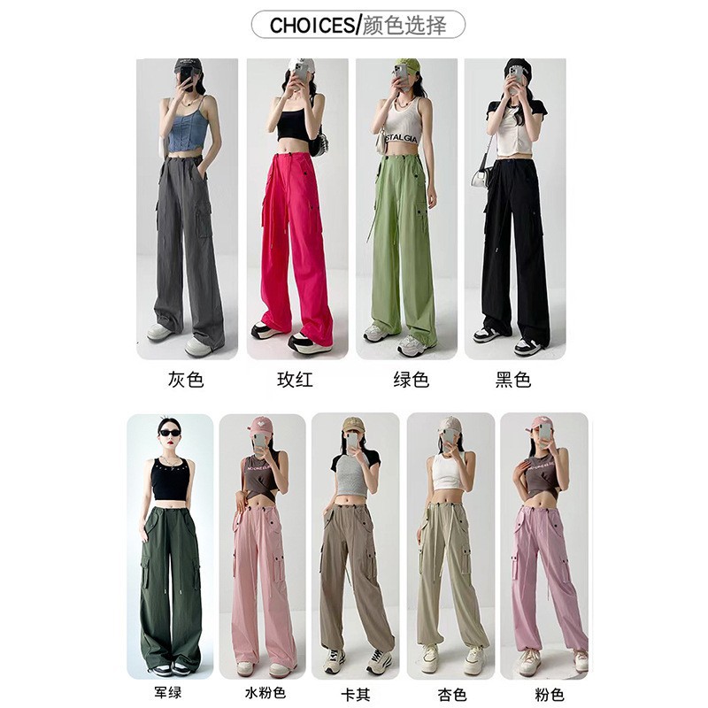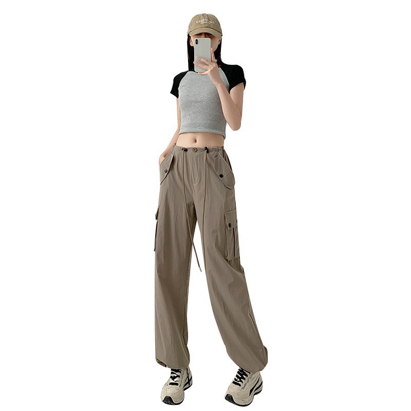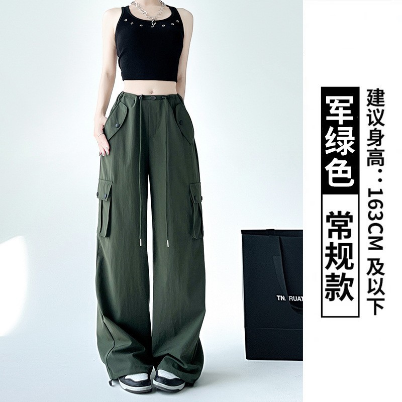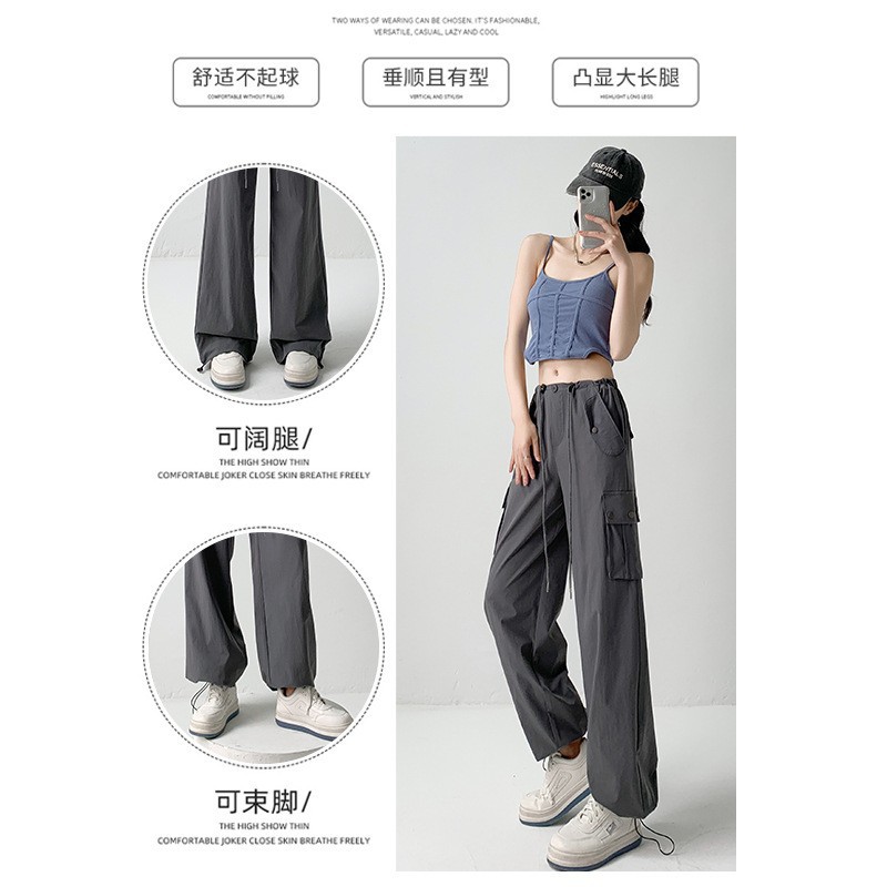 复古风工装裤女裤夏天女裤子新款宽松阔腿卫裤高腰速干运动裤