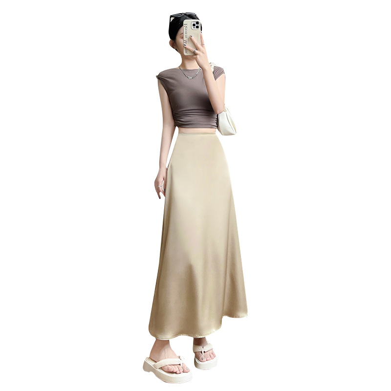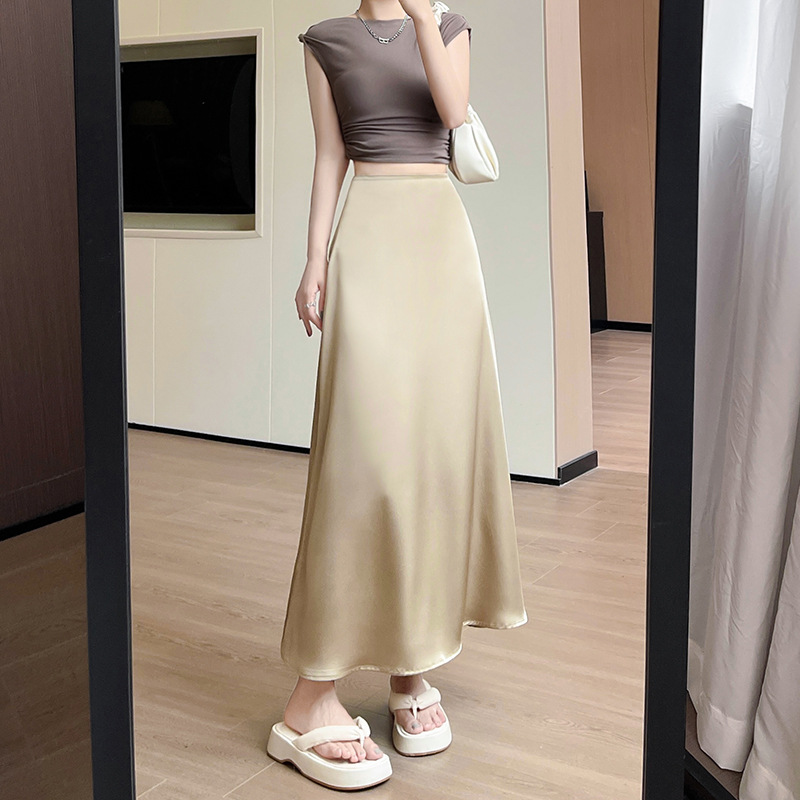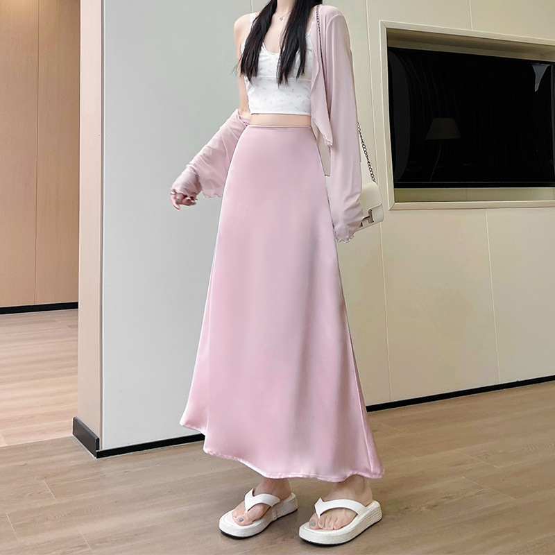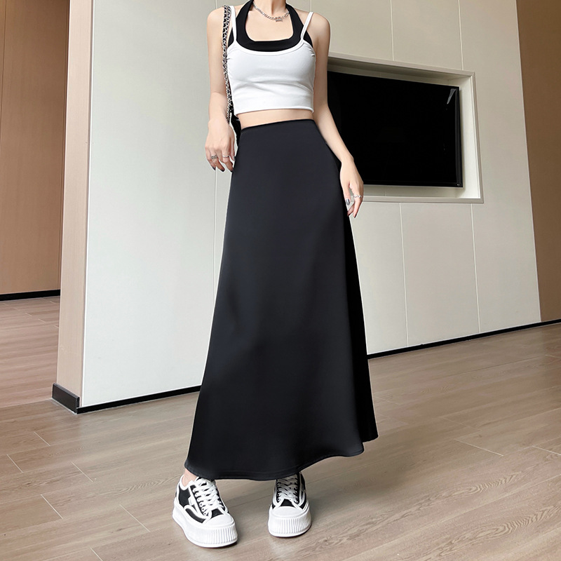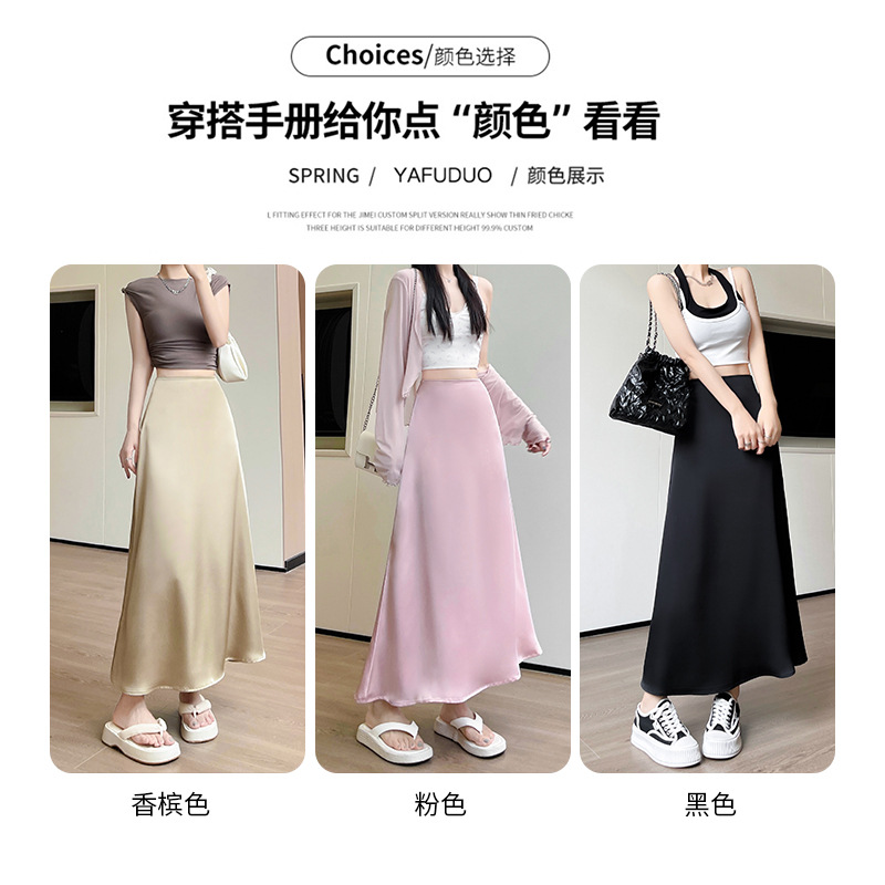 缎面鱼尾裙女夏季新款显瘦高腰中长款半身裙a字中式包臀裙子