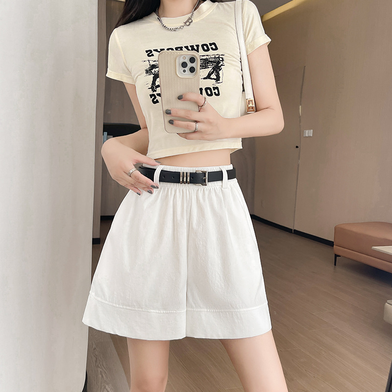 酷丝棉工装短裤女夏季新款外穿直筒高腰三分裤显瘦垂感阔腿裤