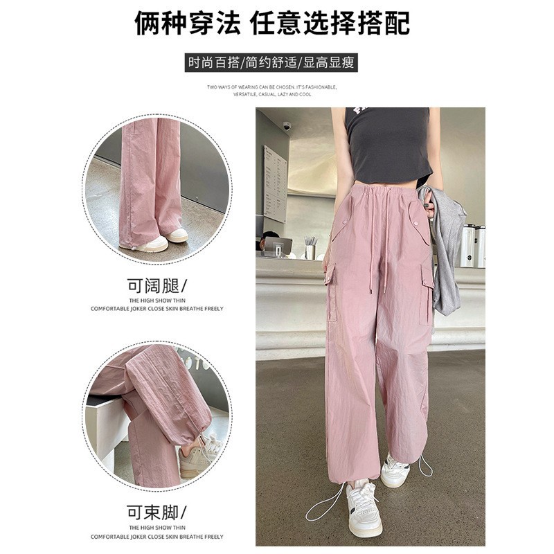 美式工装裤女装春季女显瘦垂感休闲裤卫裤高腰直筒速干运动裤