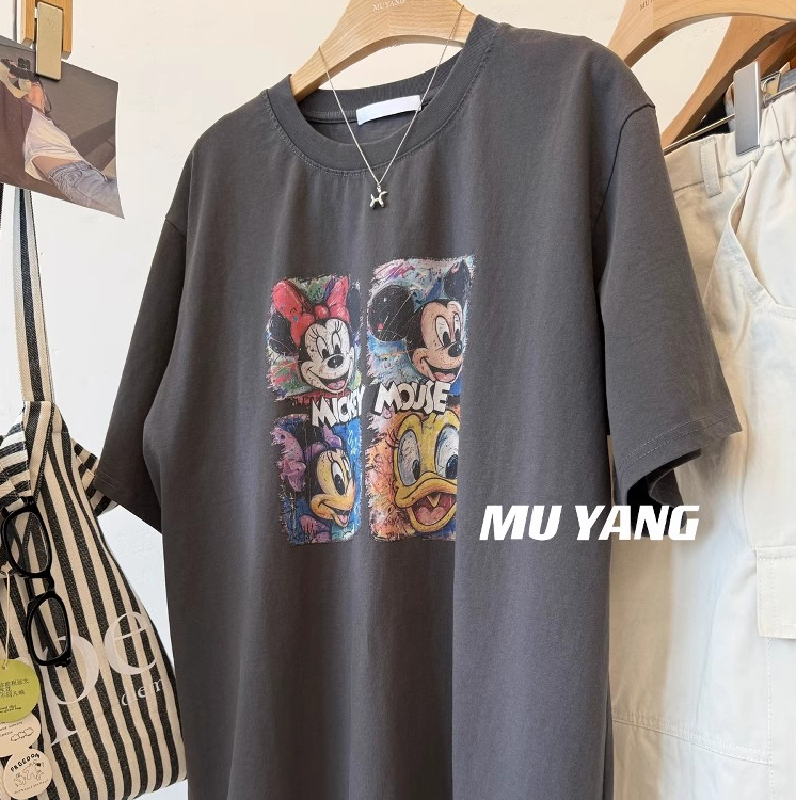 新款高级感百搭卡通印花短袖T恤女夏季慵懒风宽松显瘦上衣服体恤