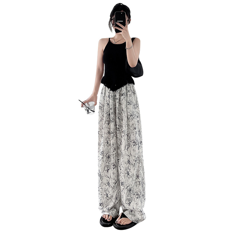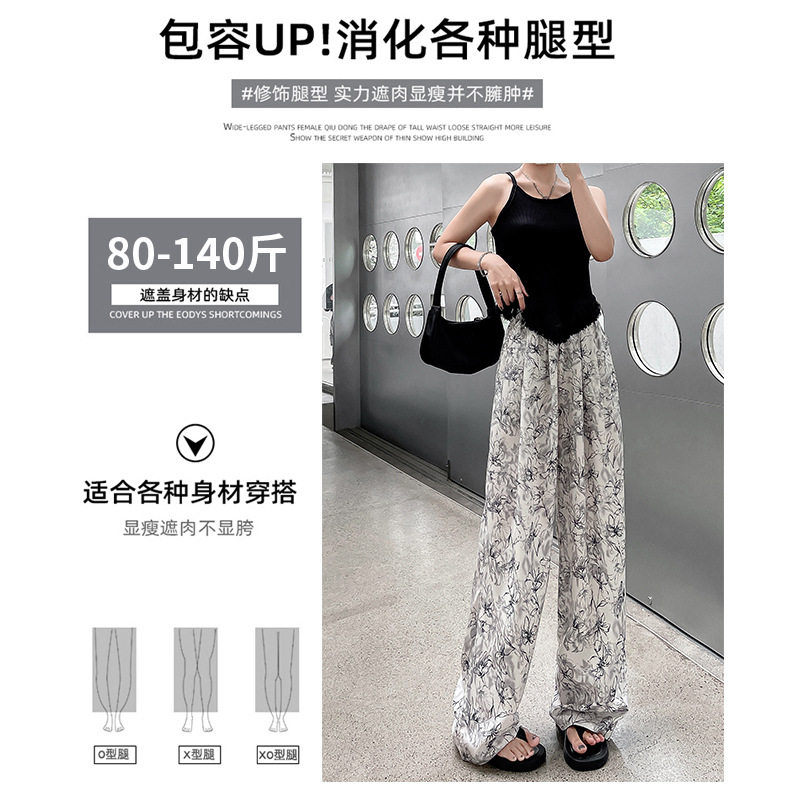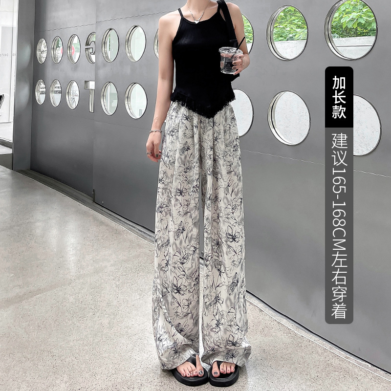 冰丝阔腿裤女夏季新款高腰垂感水墨扎染直筒裤新中式禅意裤子