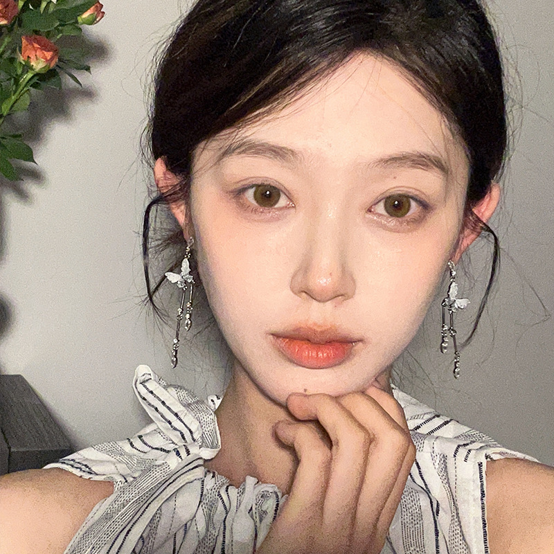 清冷蓝色水晶蝴蝶流苏耳环气质高级感长款耳坠新款百搭耳饰