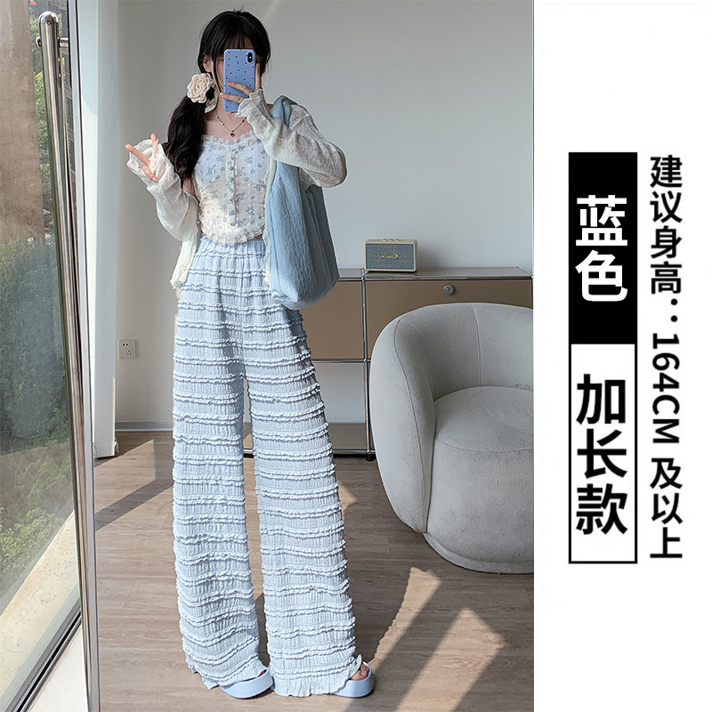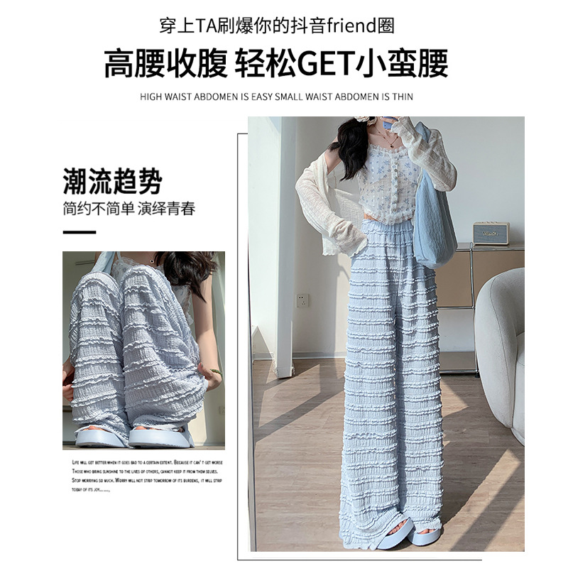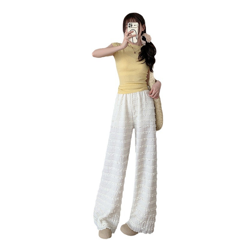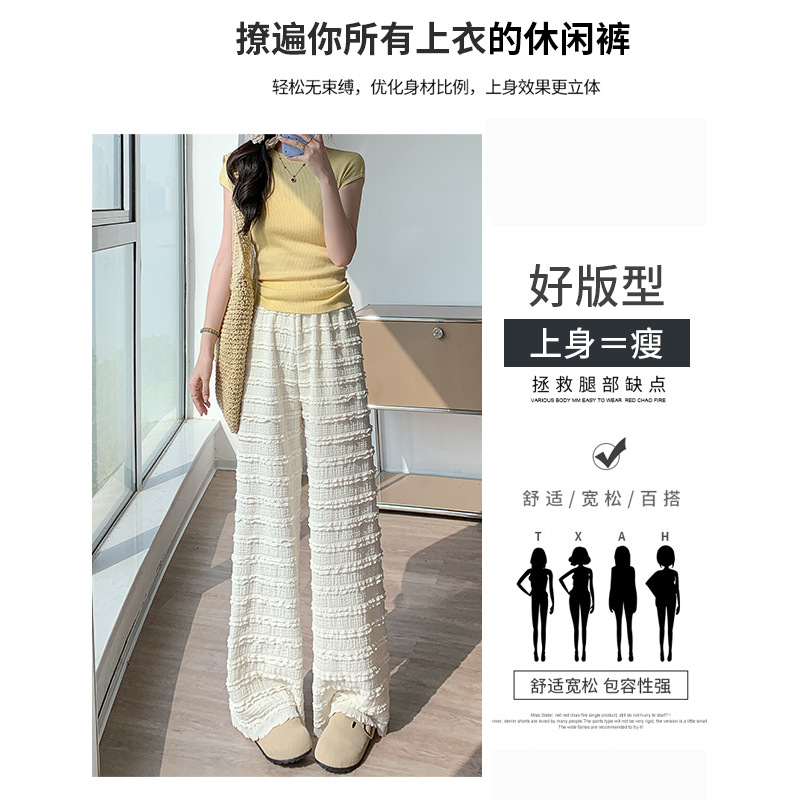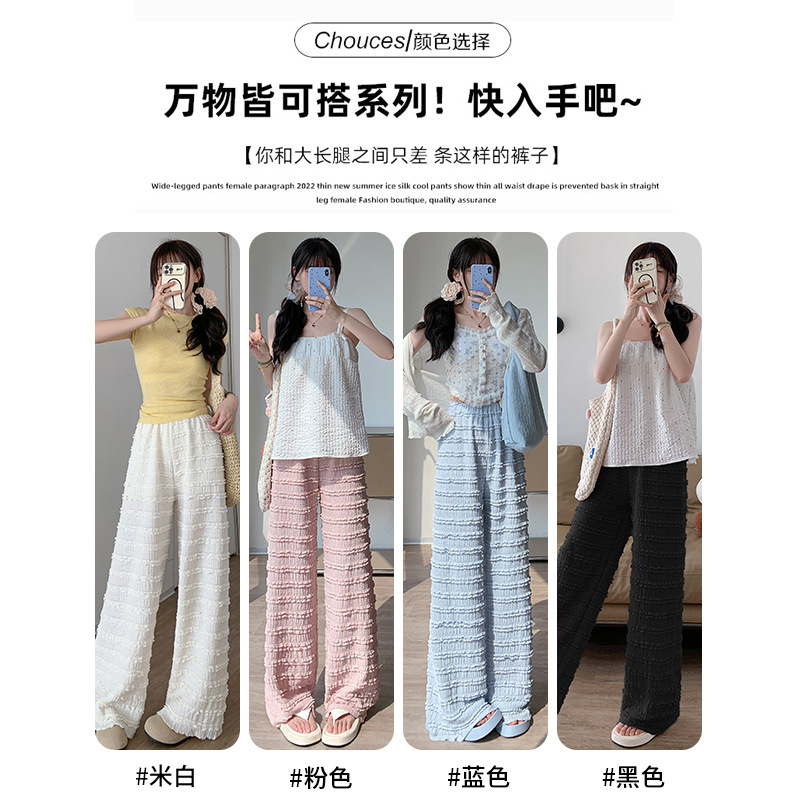 白色蛋糕阔腿裤女裤夏天女裤子高腰垂感冰丝裤直筒显瘦女装休闲裤