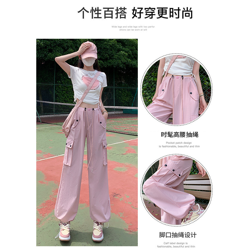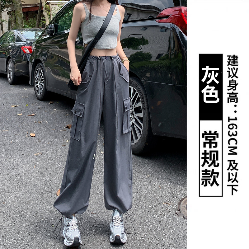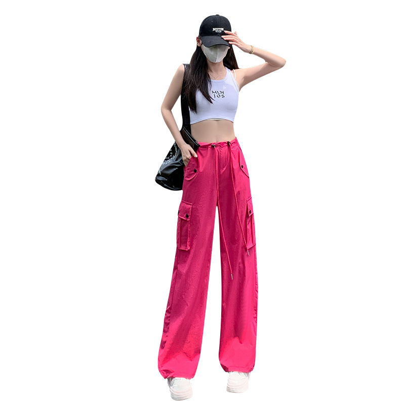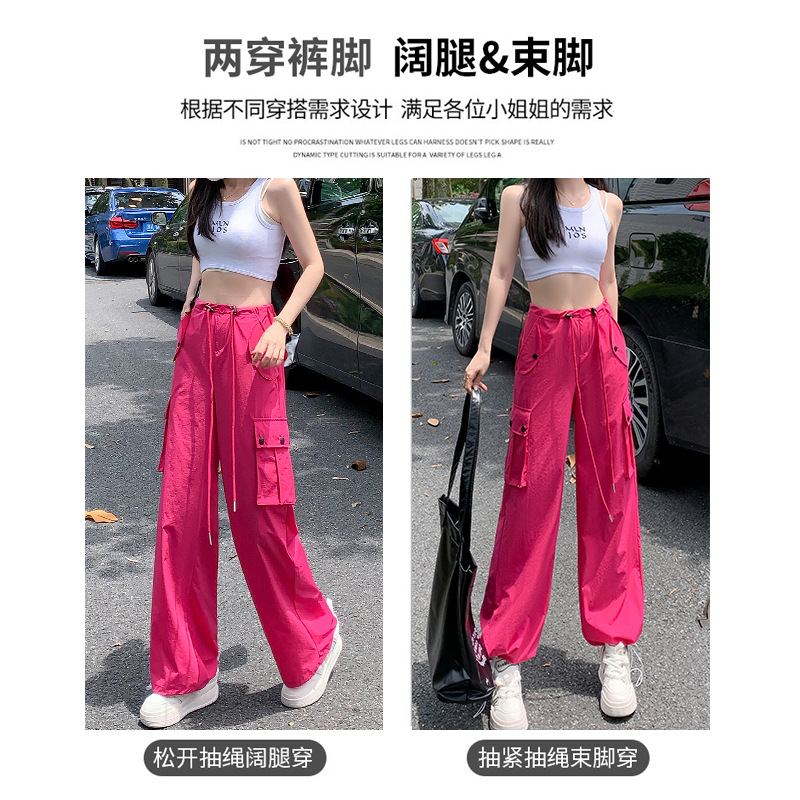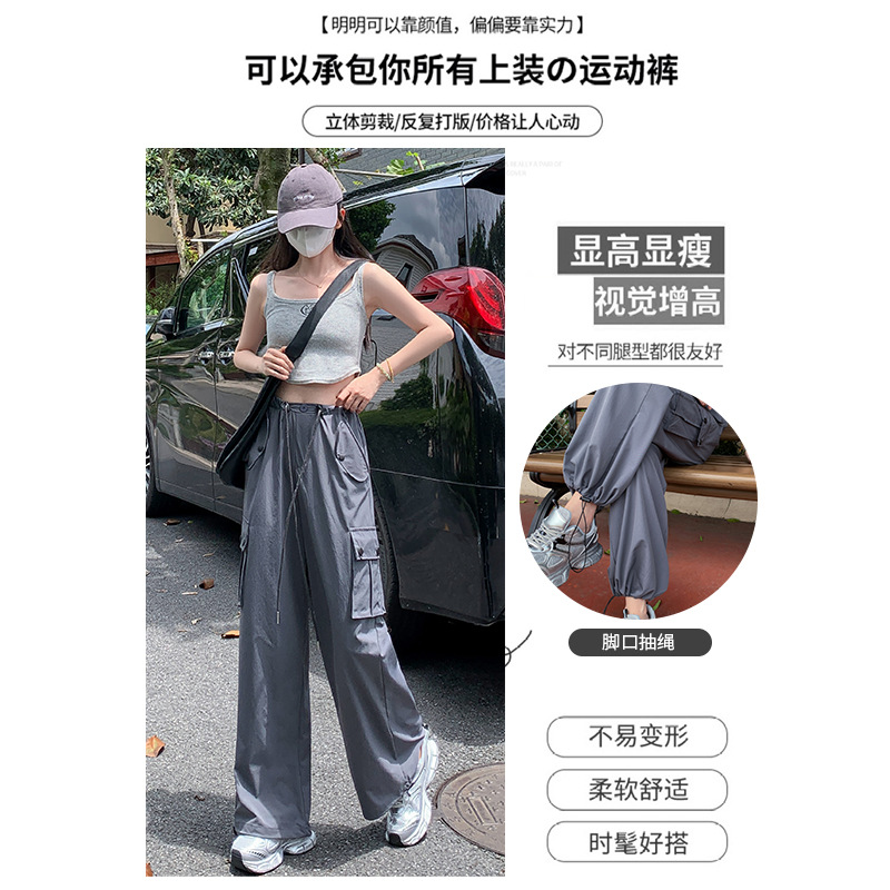 锦纶工装裤女夏薄款新款高腰直筒阔腿卫裤显瘦美式速干运动裤