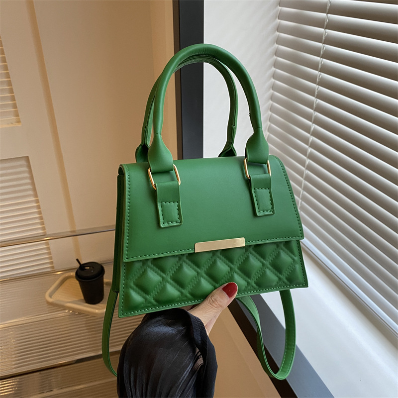 复古纯色时尚菱格绣线手提包夏季韩版百搭休闲包单肩斜挎包潮