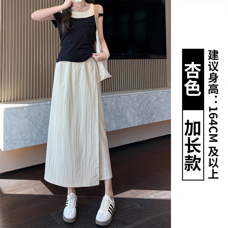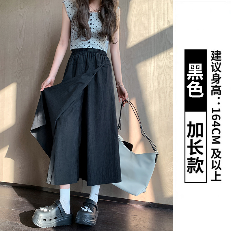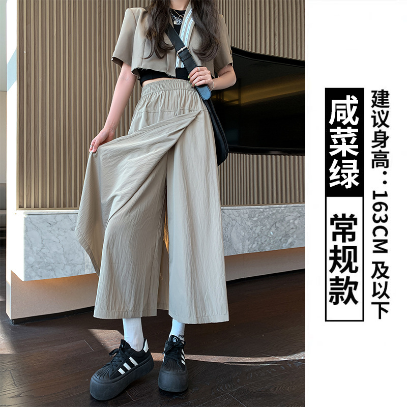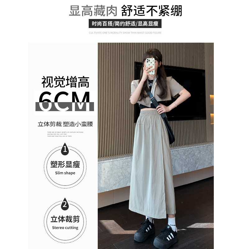 灰色山本工装裙裤女夏季女装高腰a字开叉半身裙小个子冰丝阔腿裤