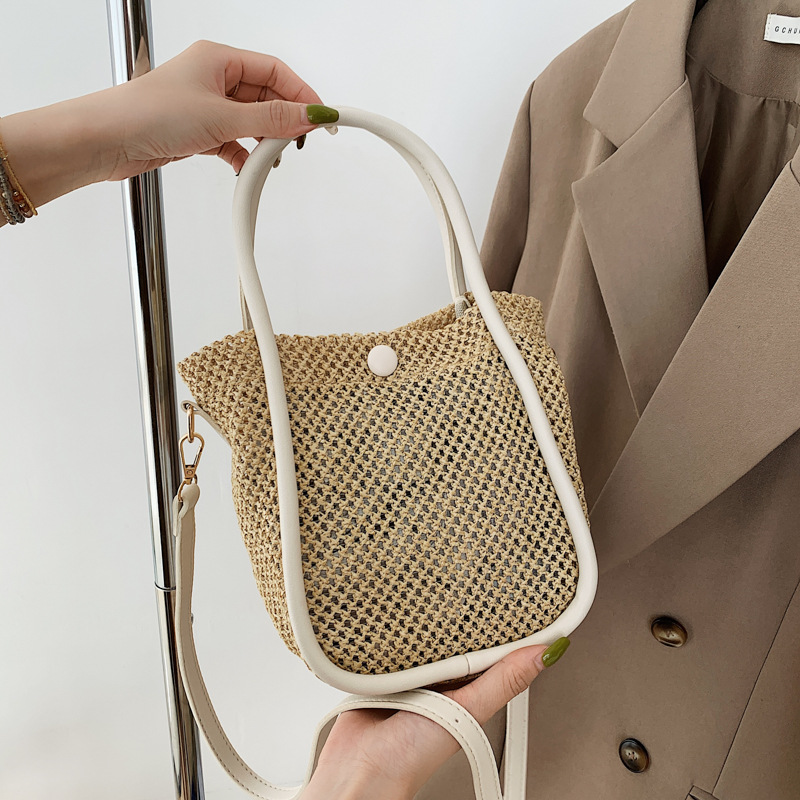 夏季复古休闲草编包包女新款潮流时尚手提水桶包单肩斜挎包