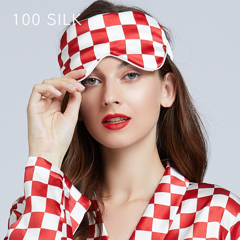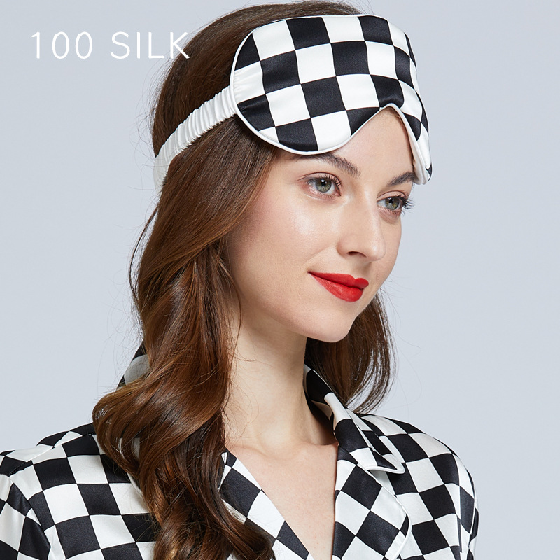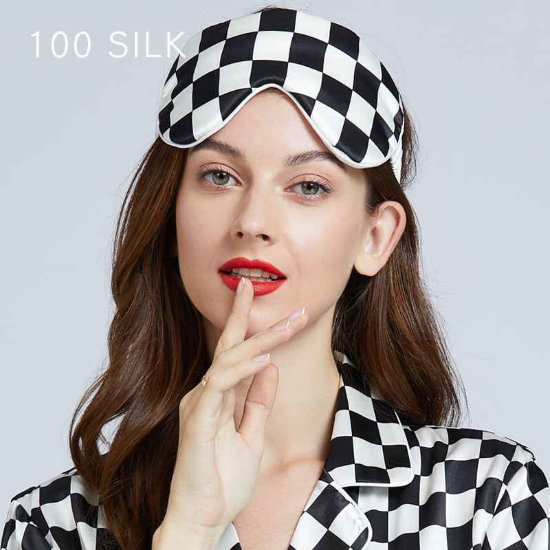 新品棋盘格子护眼罩新款19姆米真丝眼罩