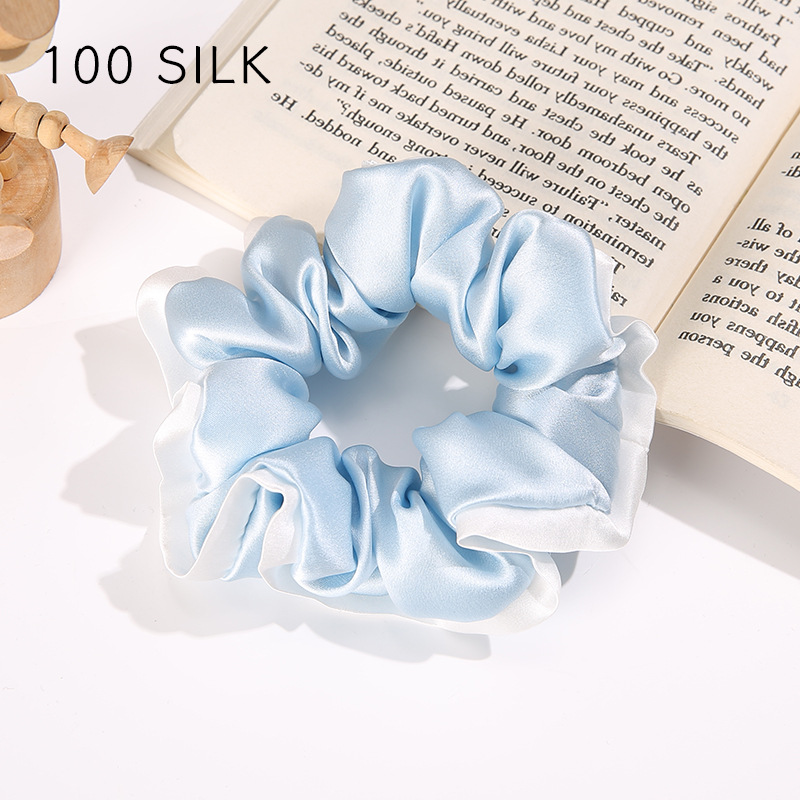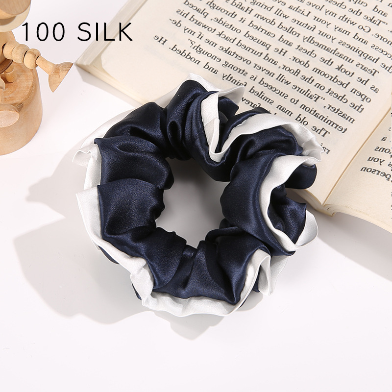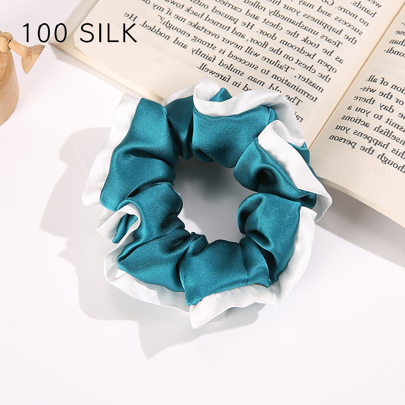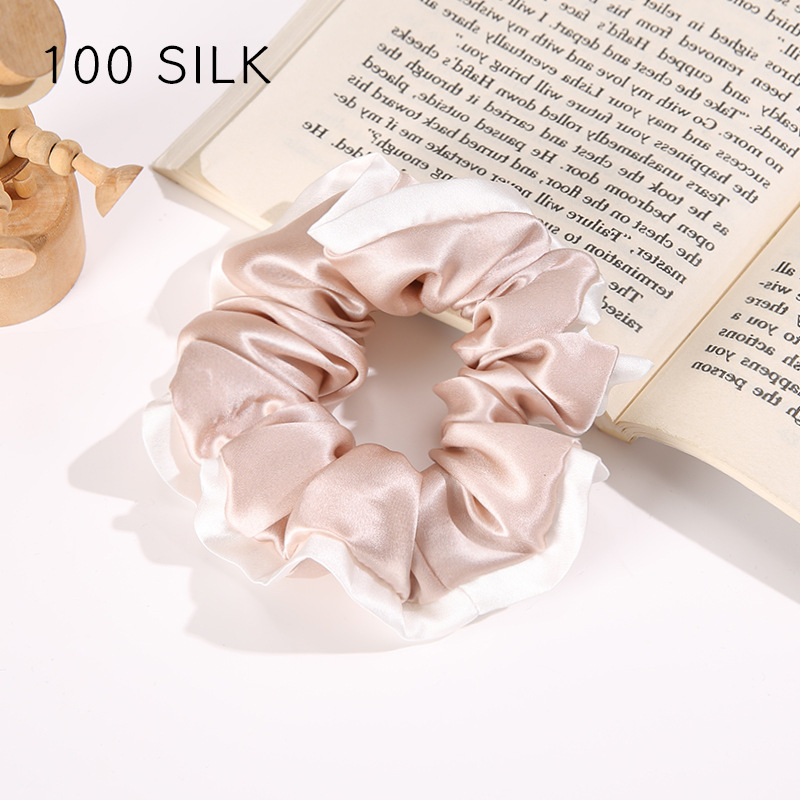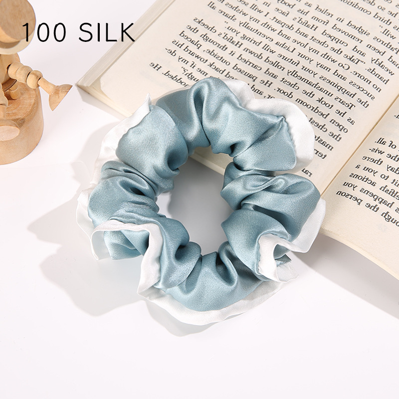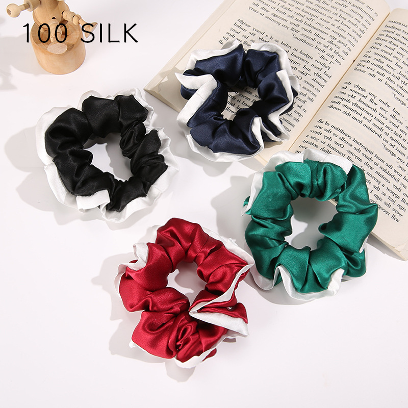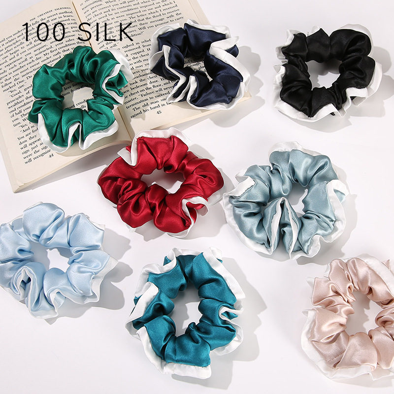 19姆米5cm白边真丝发圈 100桑蚕丝女士扎头发发绳皮筋大肠圈发圈