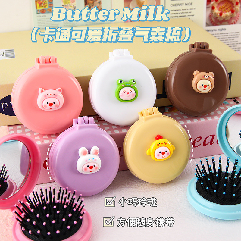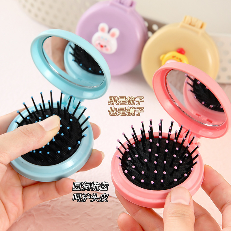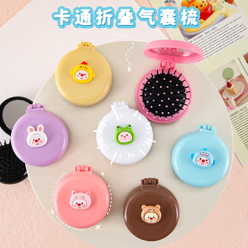 可爱卡通折叠气囊梳按摩梳镜子一体小巧迷你气垫梳便携随身小梳子