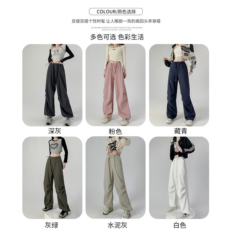 复古风工装裤女装夏季女新款复古直筒阔腿卫裤高腰休闲运动裤