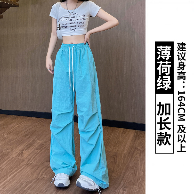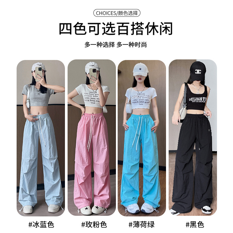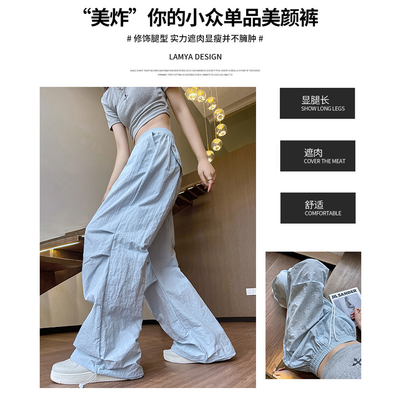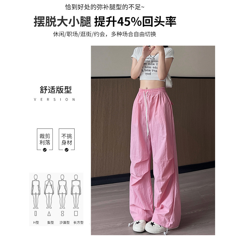 锦纶工装裤女夏薄款新美式休闲直筒降落伞裤子高腰速干阔腿裤