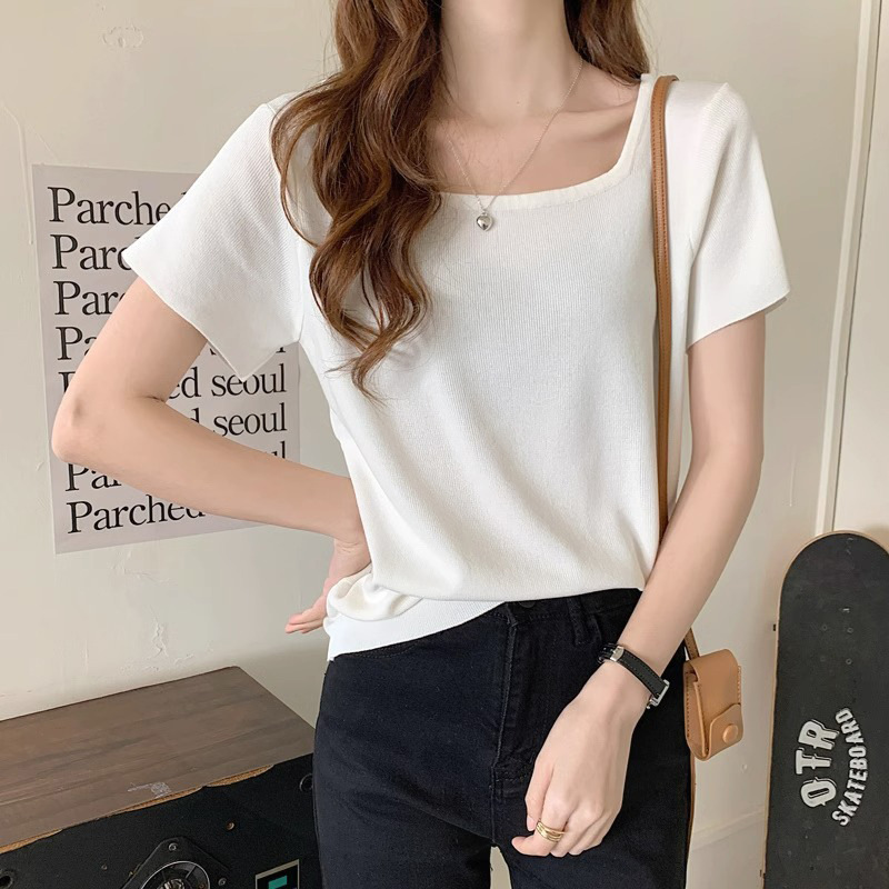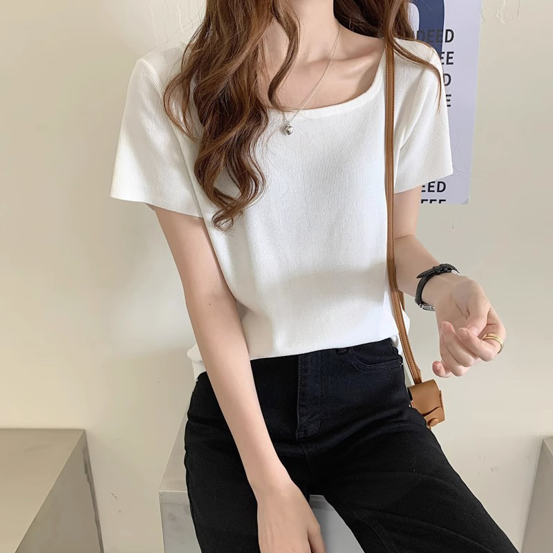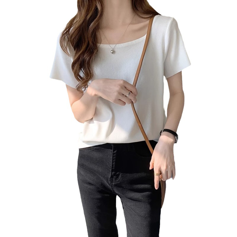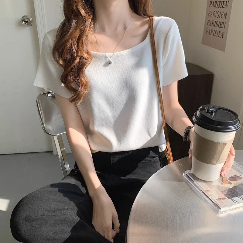 白色小半高领t恤女短袖宽松韩版百搭正肩中领内搭打底衫夏季上衣