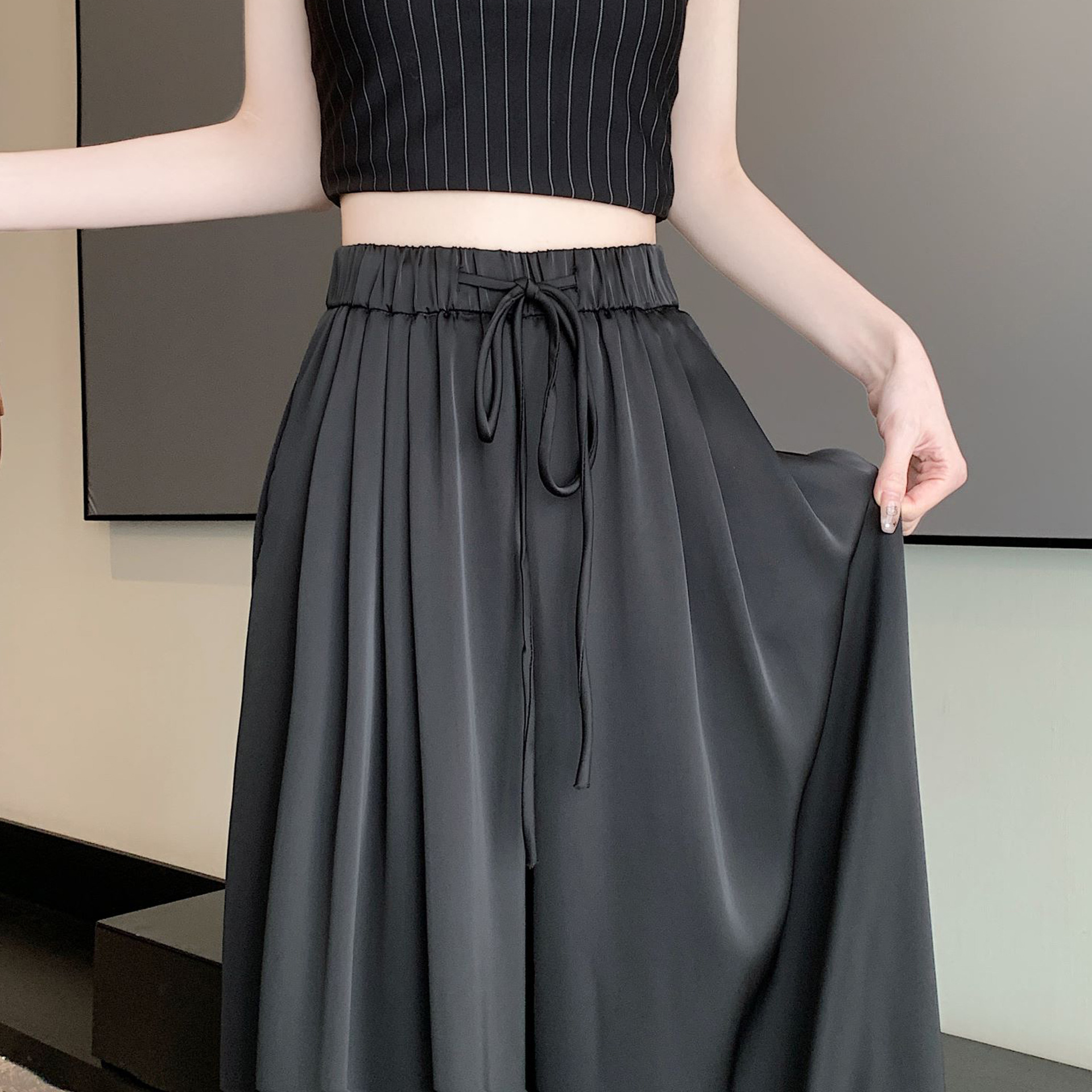 黑色冰丝醋酸缎面裤子女夏季薄款阔腿裤松紧腰高腰垂感休闲凉凉裤