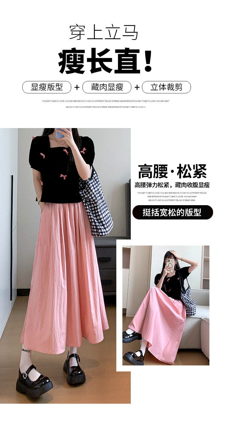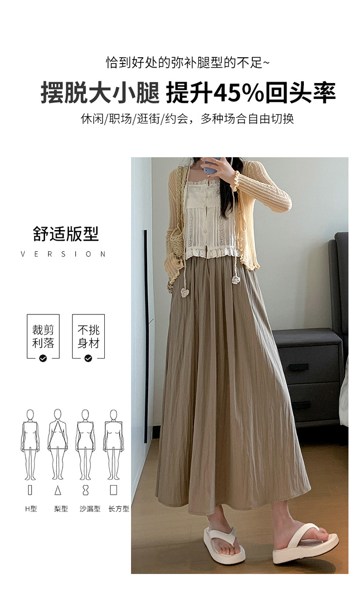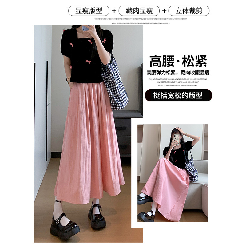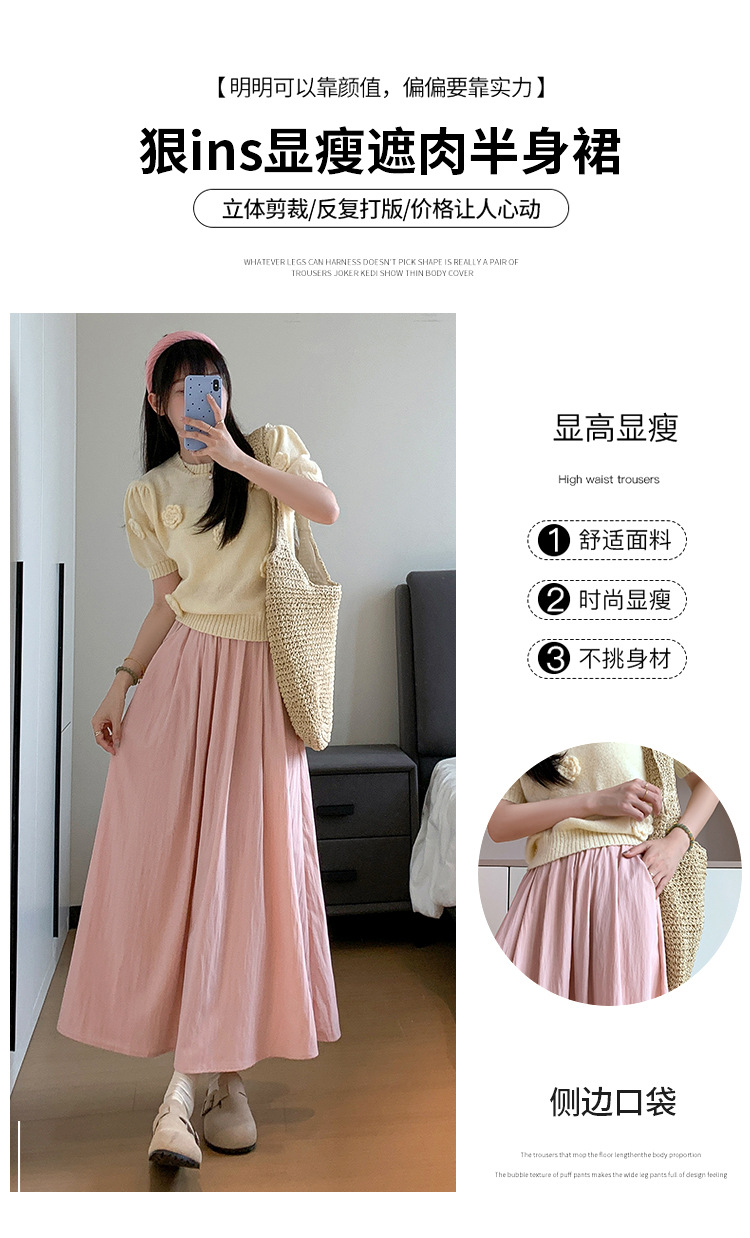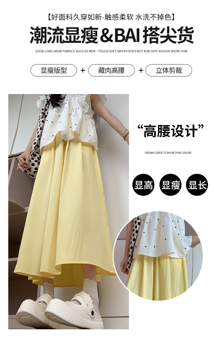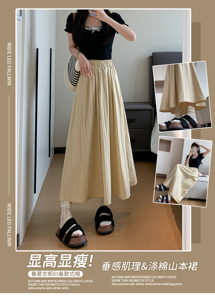 涤棉山本裙女春夏新款垂坠感高腰a字裙显瘦中长款伞裙半身裙