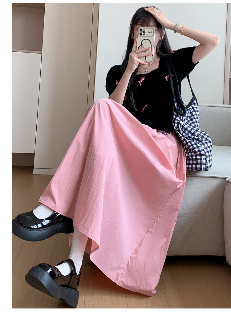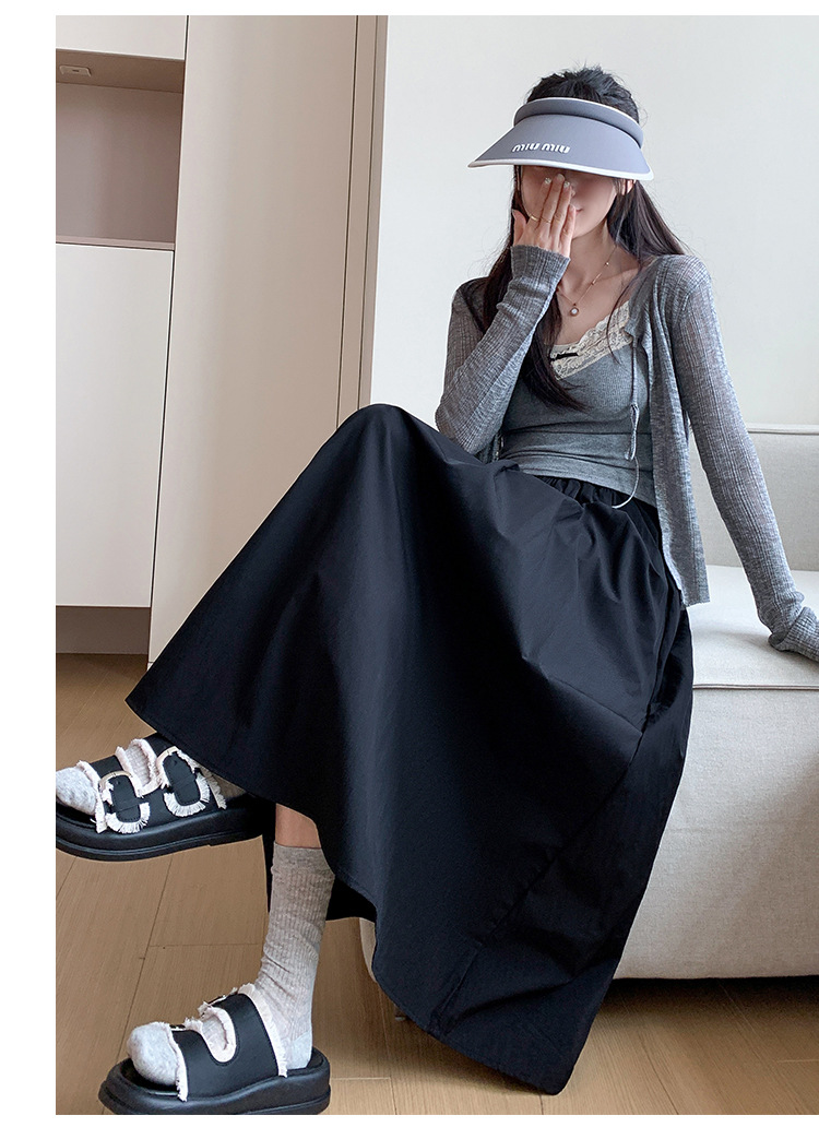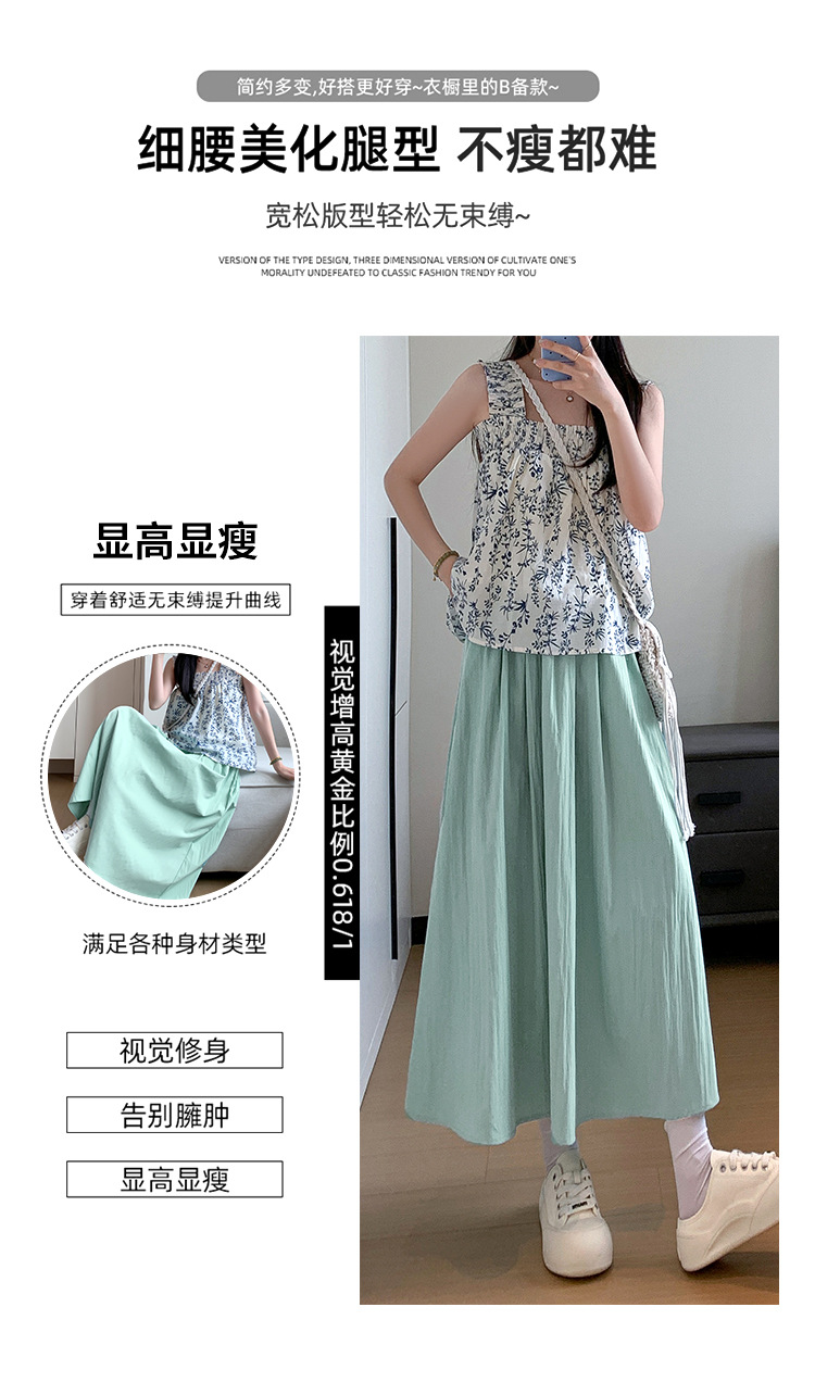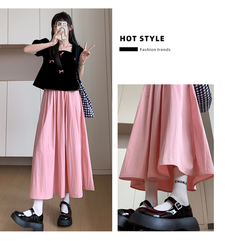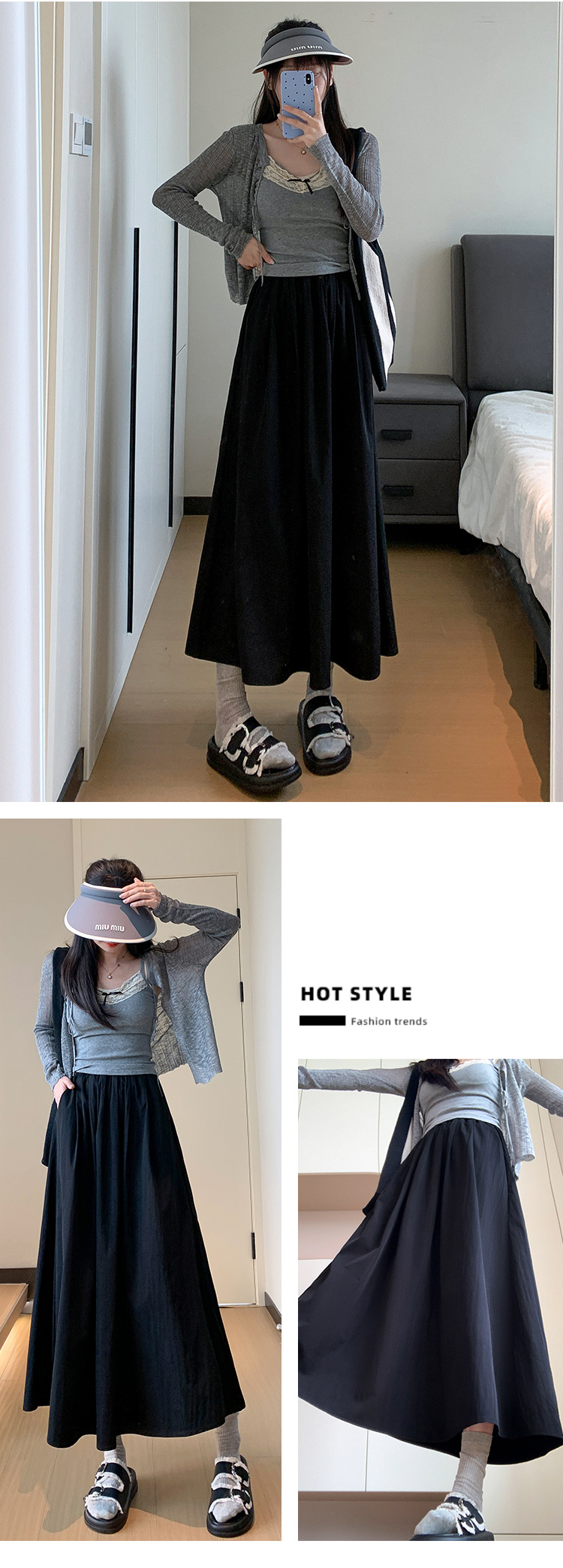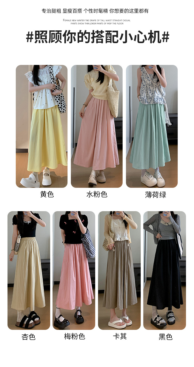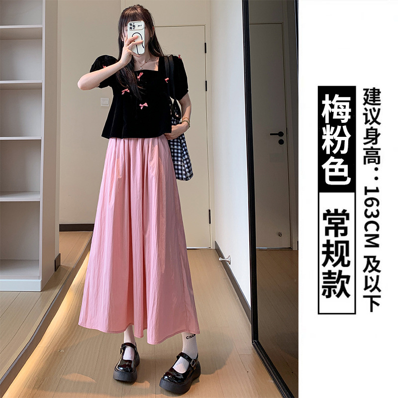 涤棉山本裙女春夏新款垂坠感高腰a字裙显瘦中长款伞裙半身裙