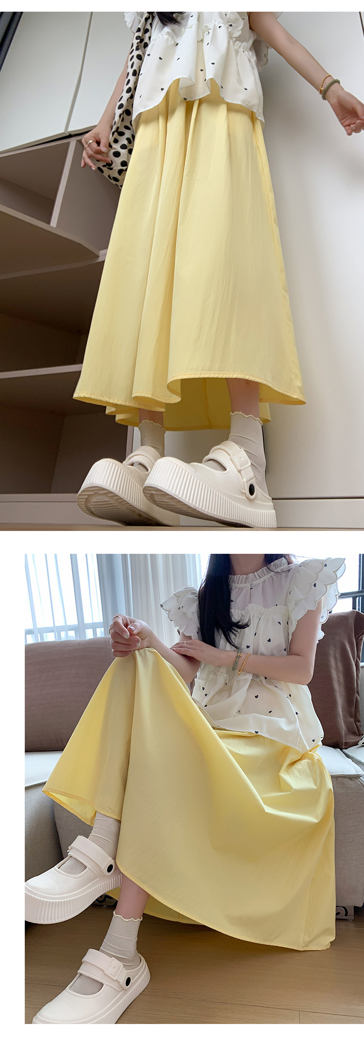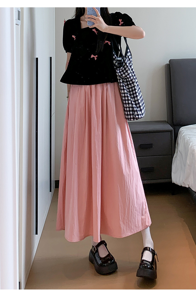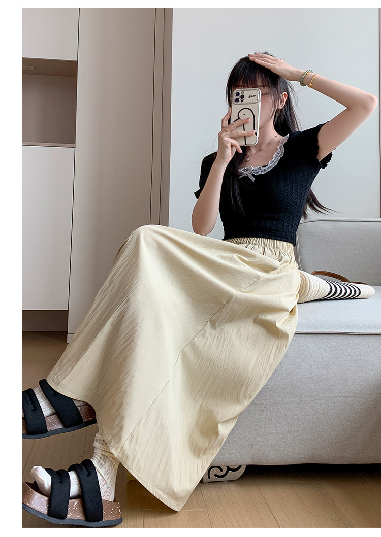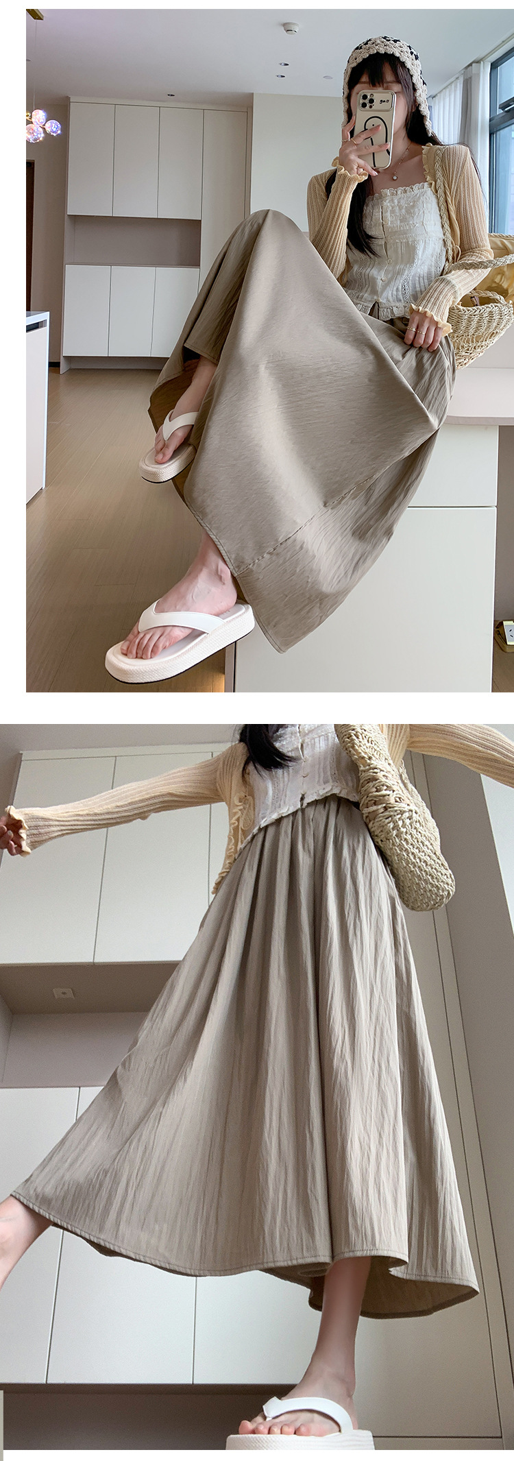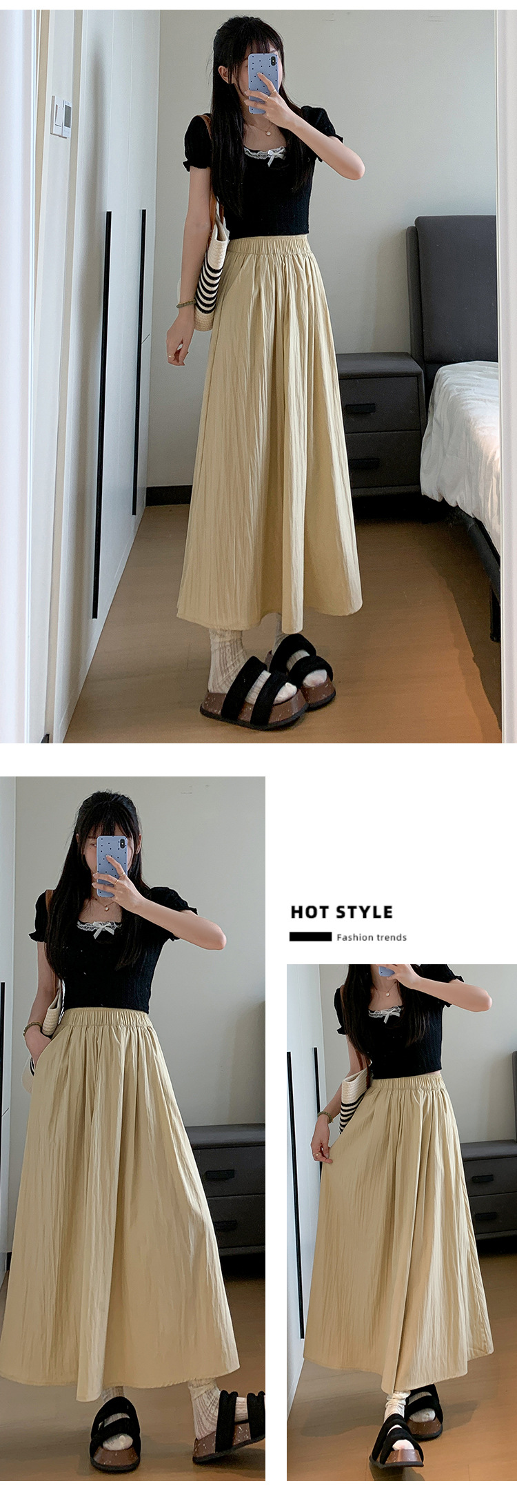 涤棉山本裙女春夏新款垂坠感高腰a字裙显瘦中长款伞裙半身裙