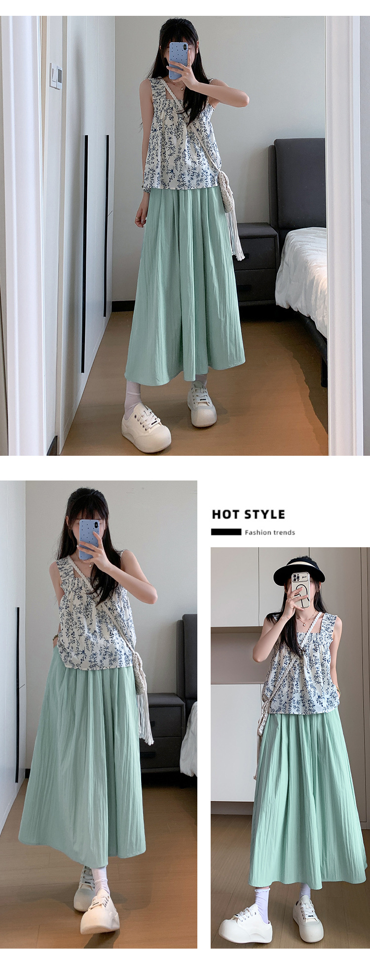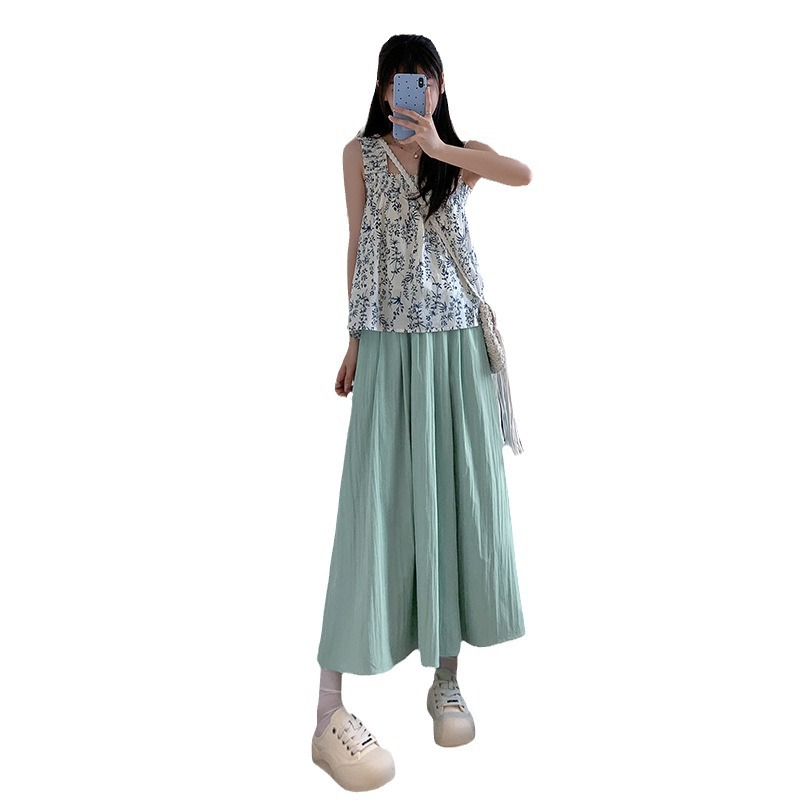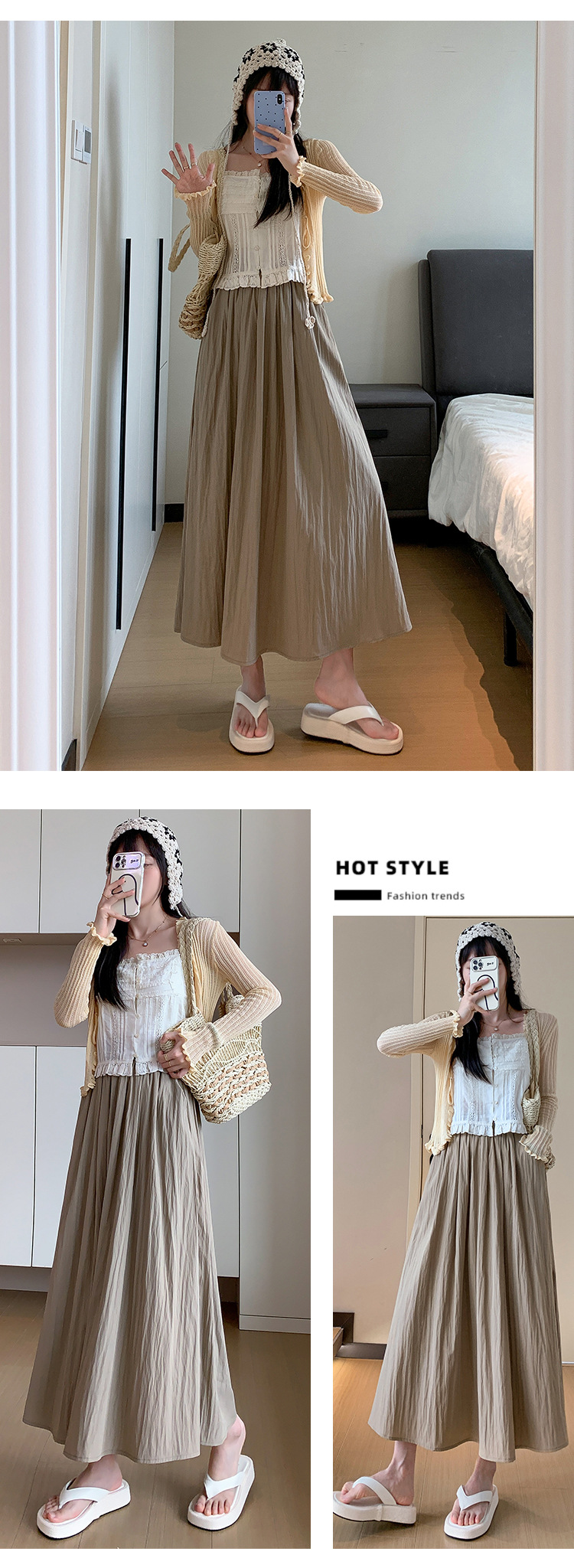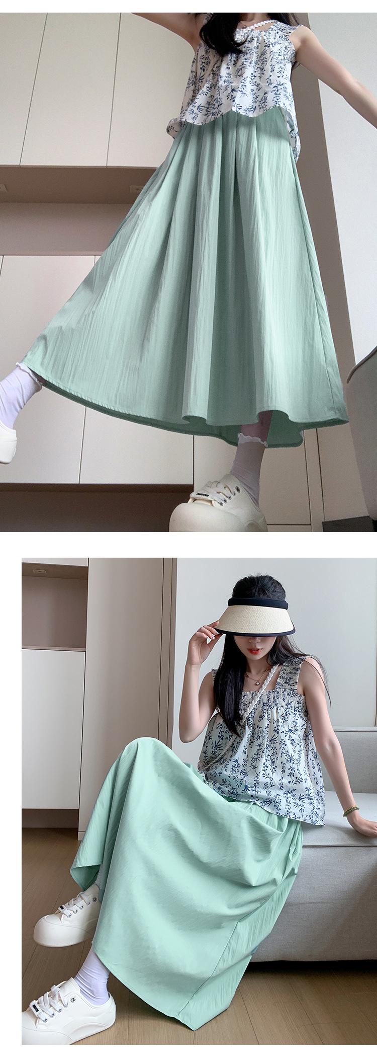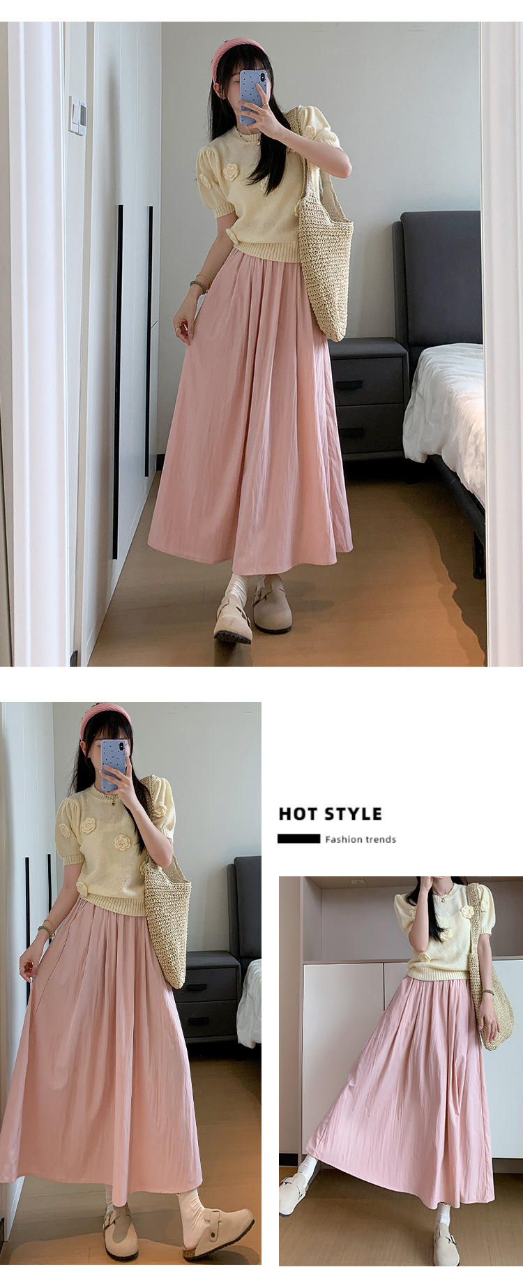 涤棉山本裙女春夏新款垂坠感高腰a字裙显瘦中长款伞裙半身裙