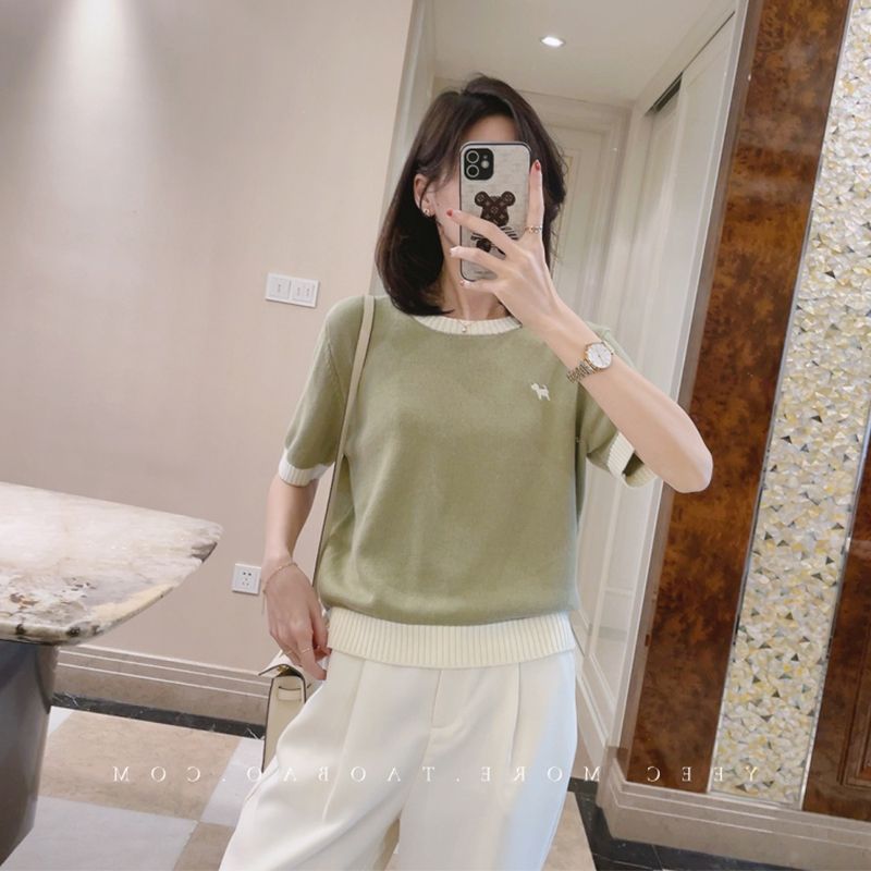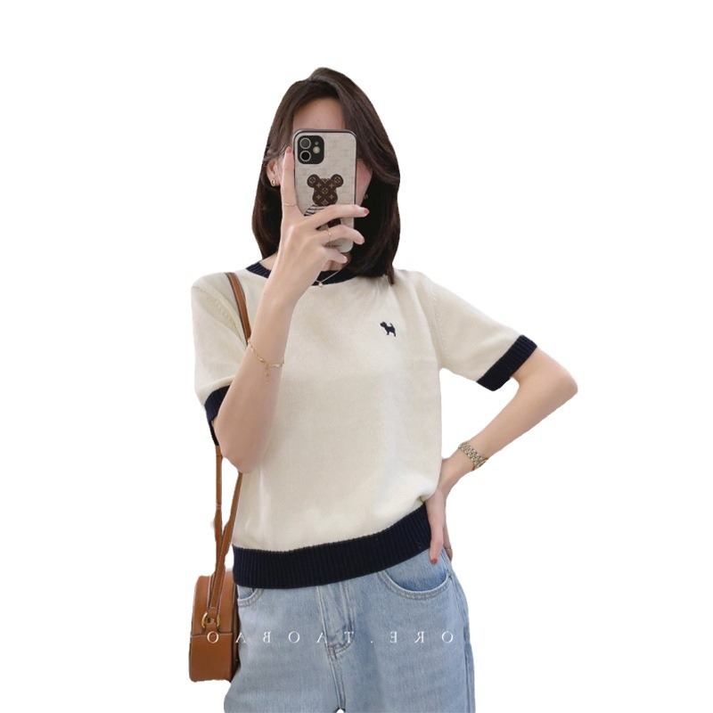小个子减龄白色针织衫女夏季小众设计韩版宽松显瘦短款上衣女