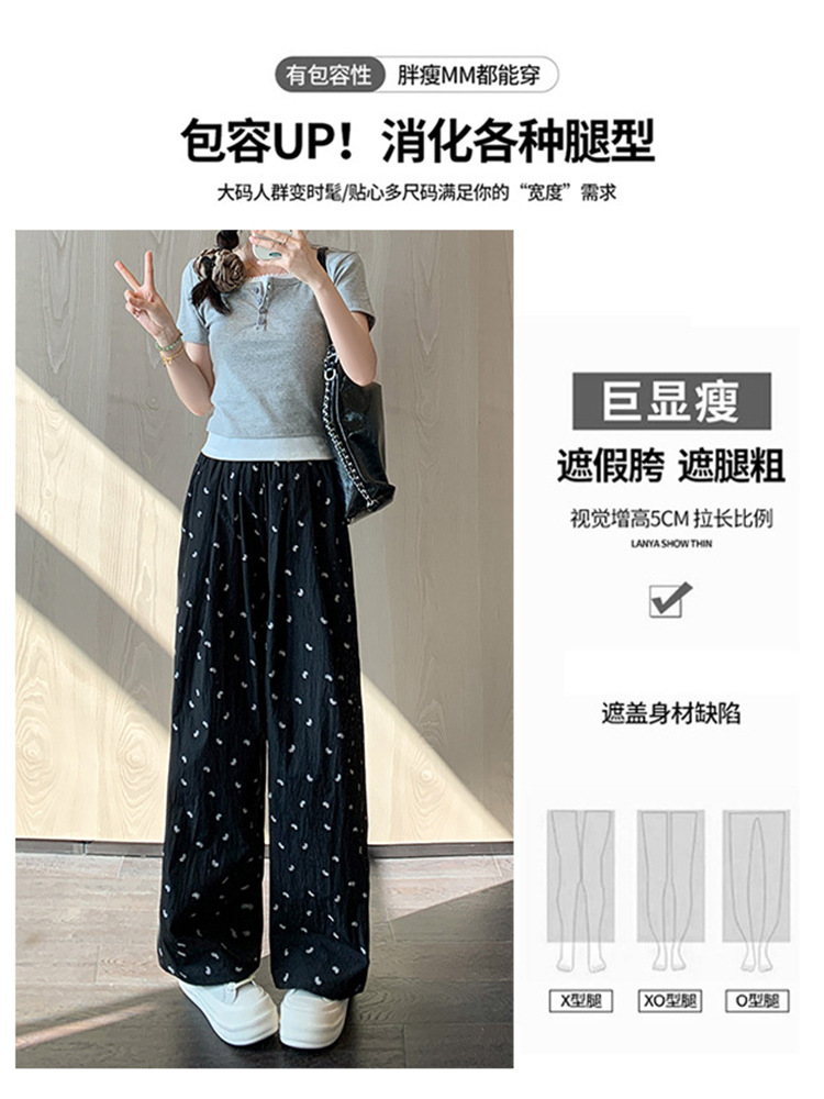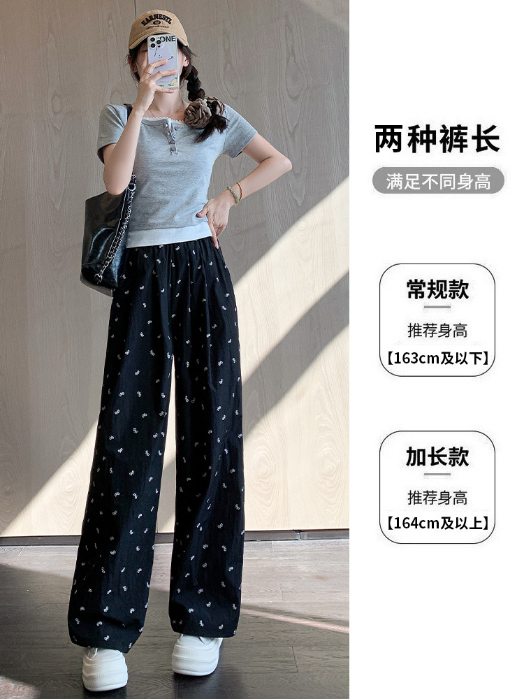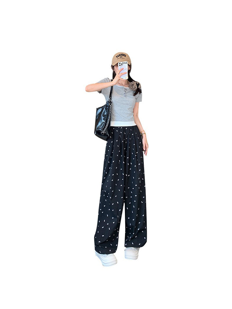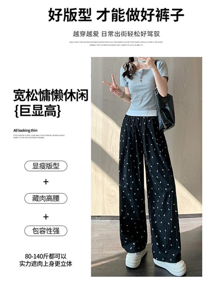 蝴蝶结印花山本裤女裤夏天女裤子垂感慵懒风休闲裤直筒女装阔腿裤