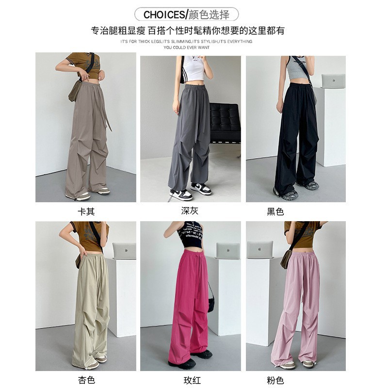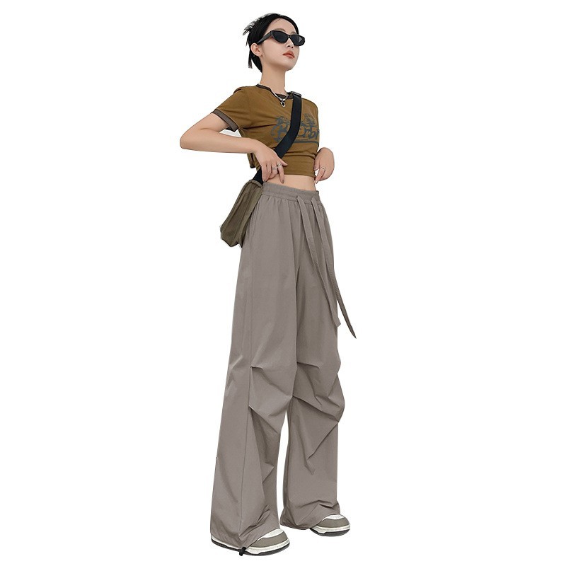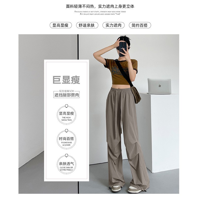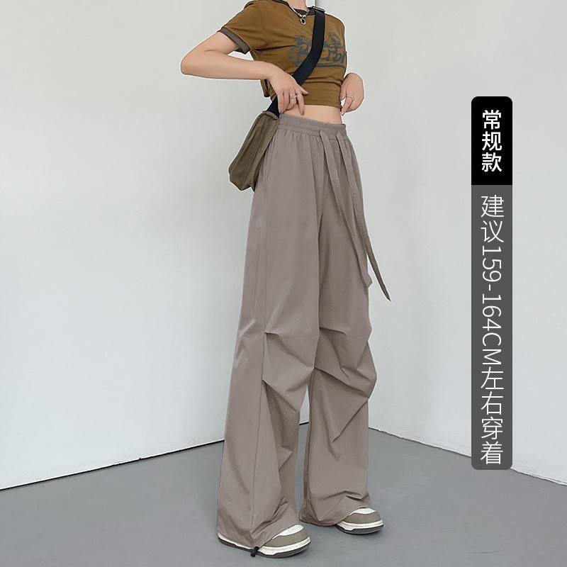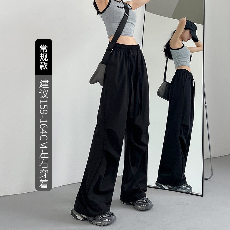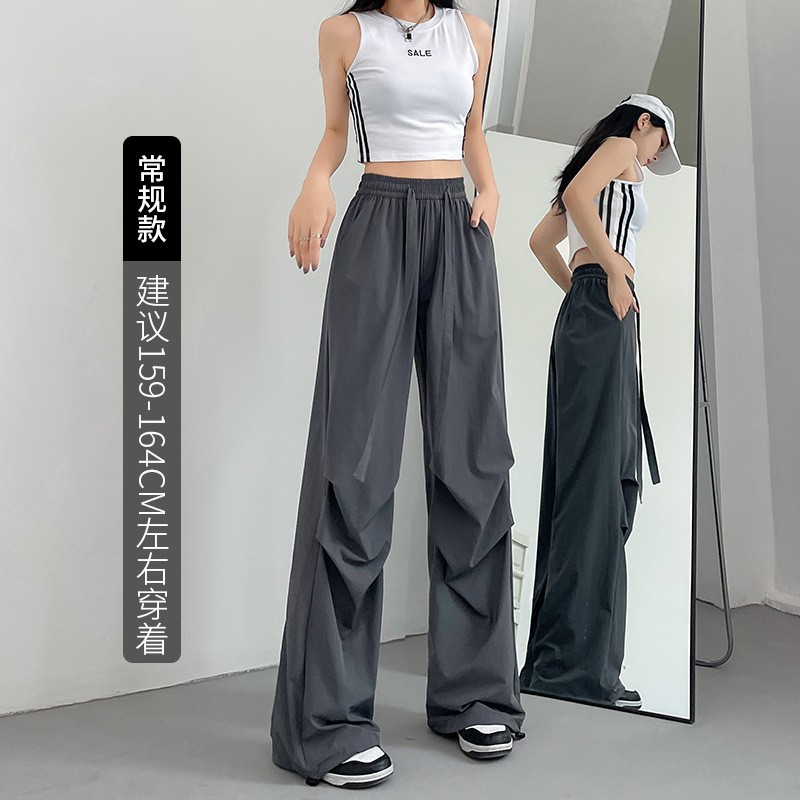 锦纶工装裤女夏薄款24新款高腰垂感降落伞裤子休闲速干阔腿运动裤