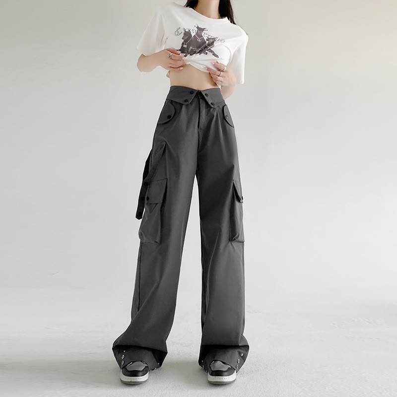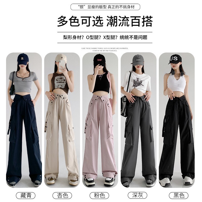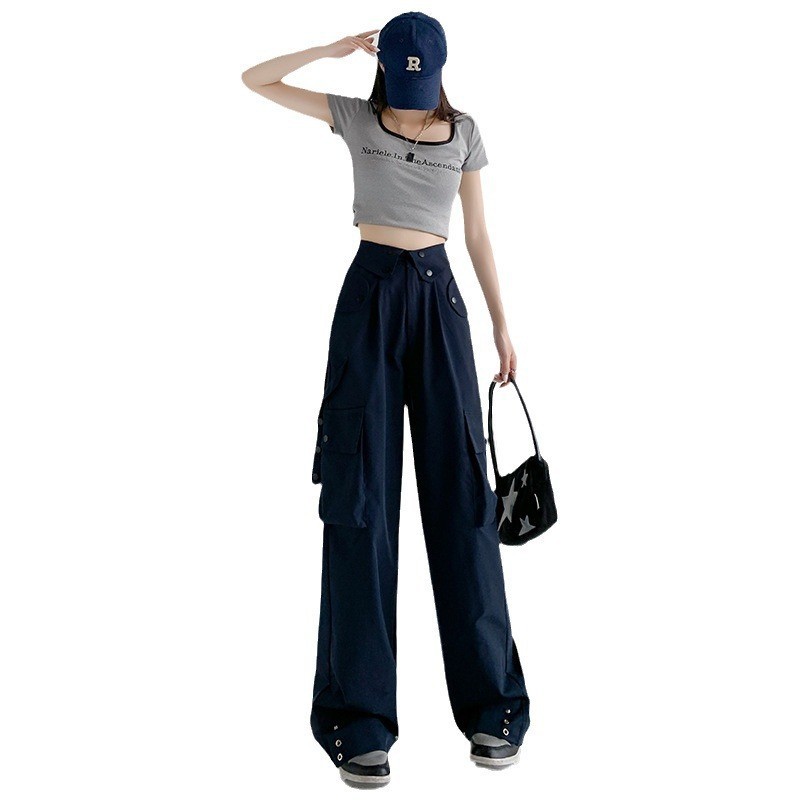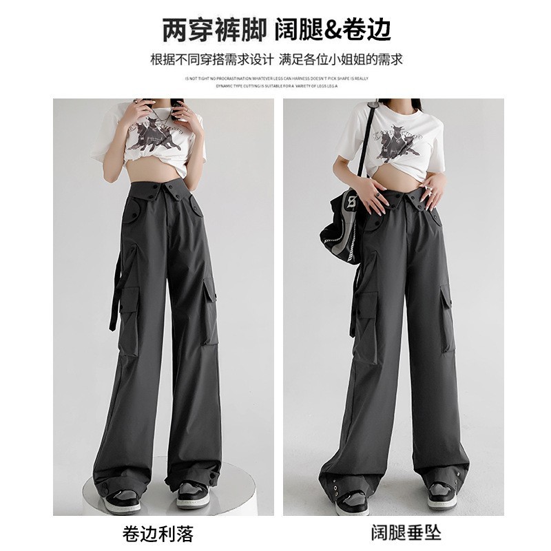 复古风工装裤女夏薄款新款直筒高腰阔腿裤显瘦休闲美式运动裤