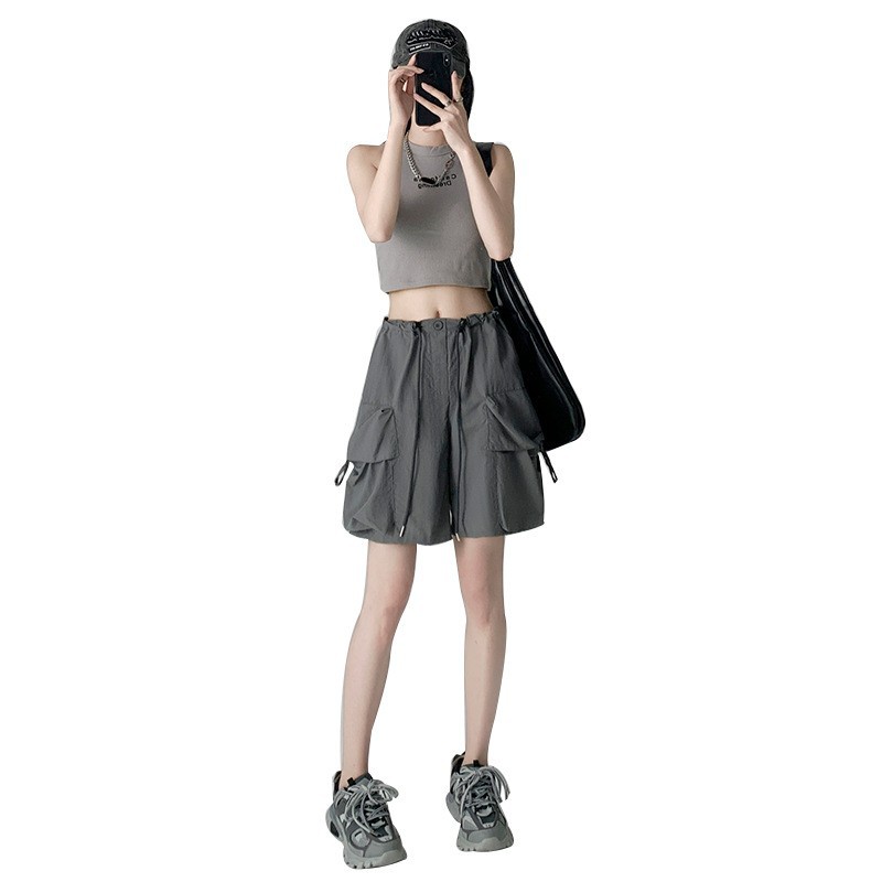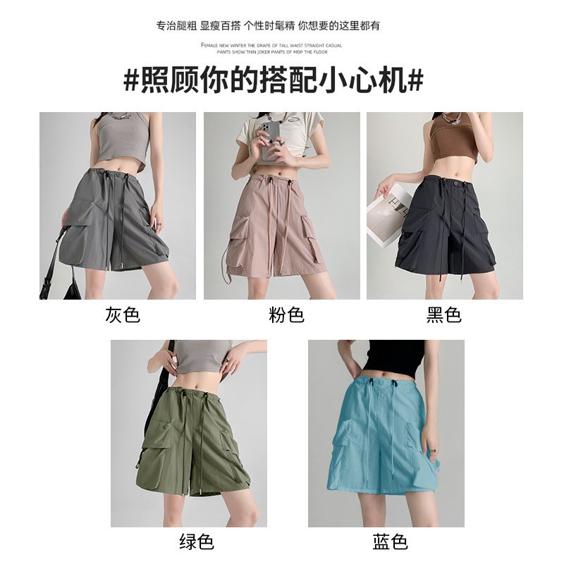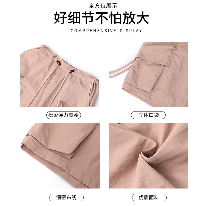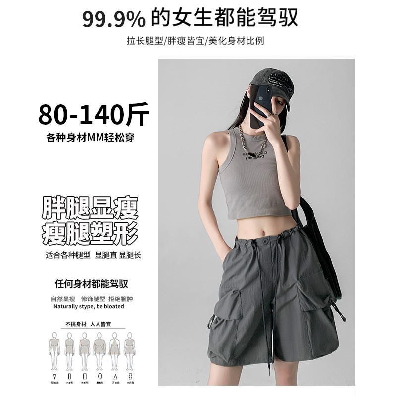 锦纶工装短裤女夏薄款新款外穿美式阔腿裤女装直筒速干五分裤