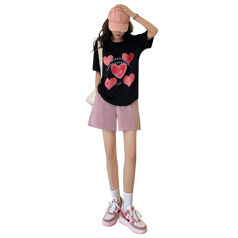 纯棉运动短裤女装夏季新款百搭显瘦直筒裤高腰宽松外穿三分裤