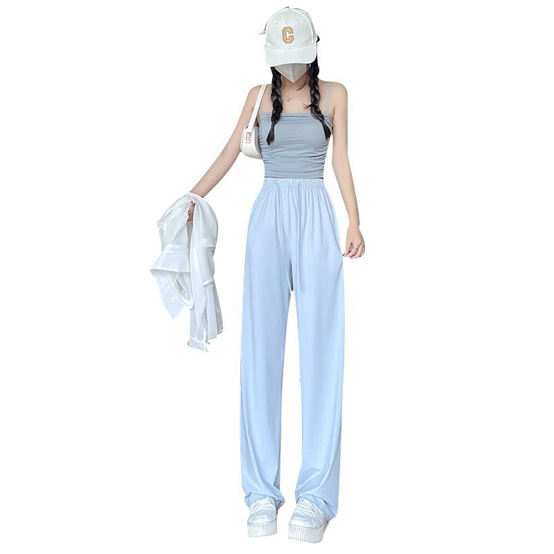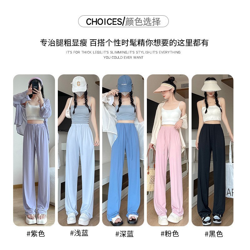 锦纶防晒裤女裤夏天女裤子新款垂感直筒休闲裤女装冰丝阔腿裤