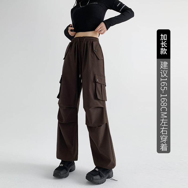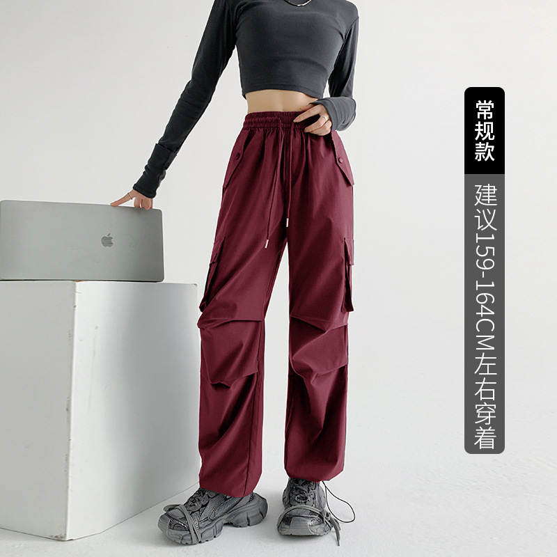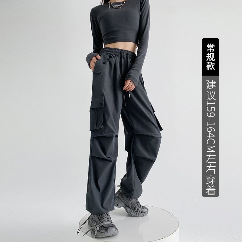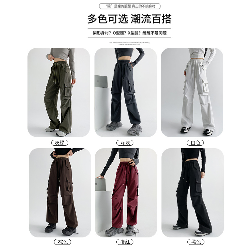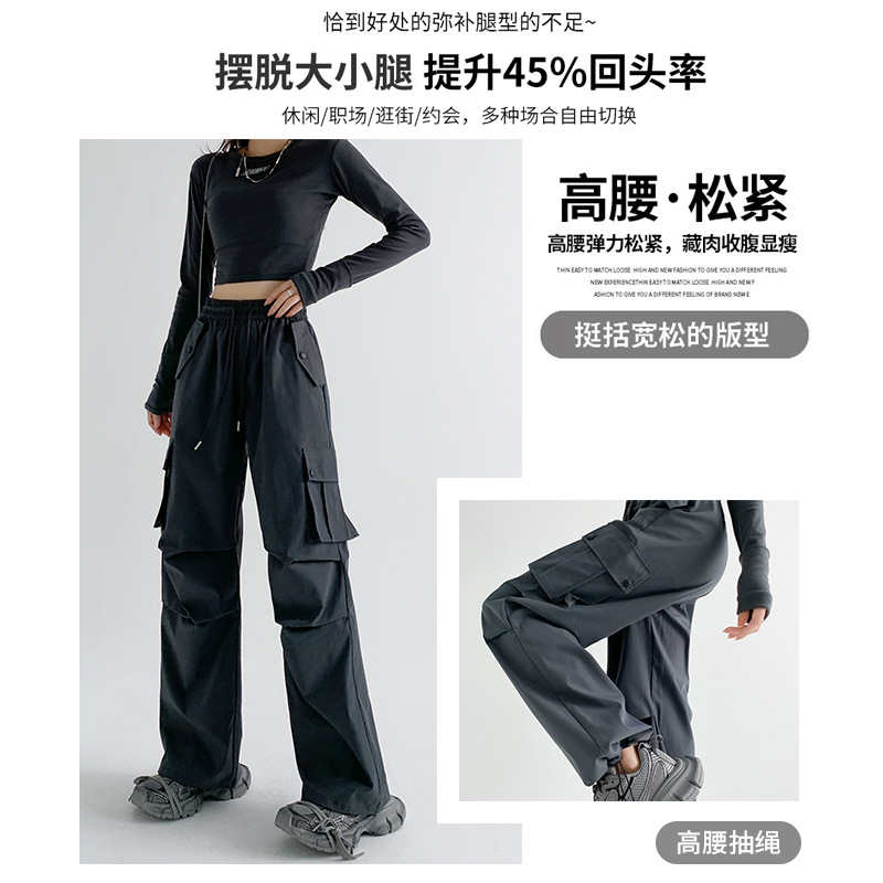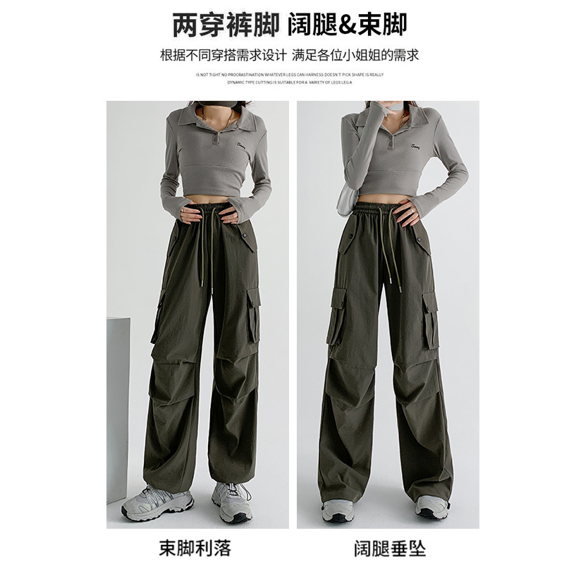 美式工装裤女夏薄款24新款显瘦直筒降落伞裤子宽松高腰阔腿运动裤