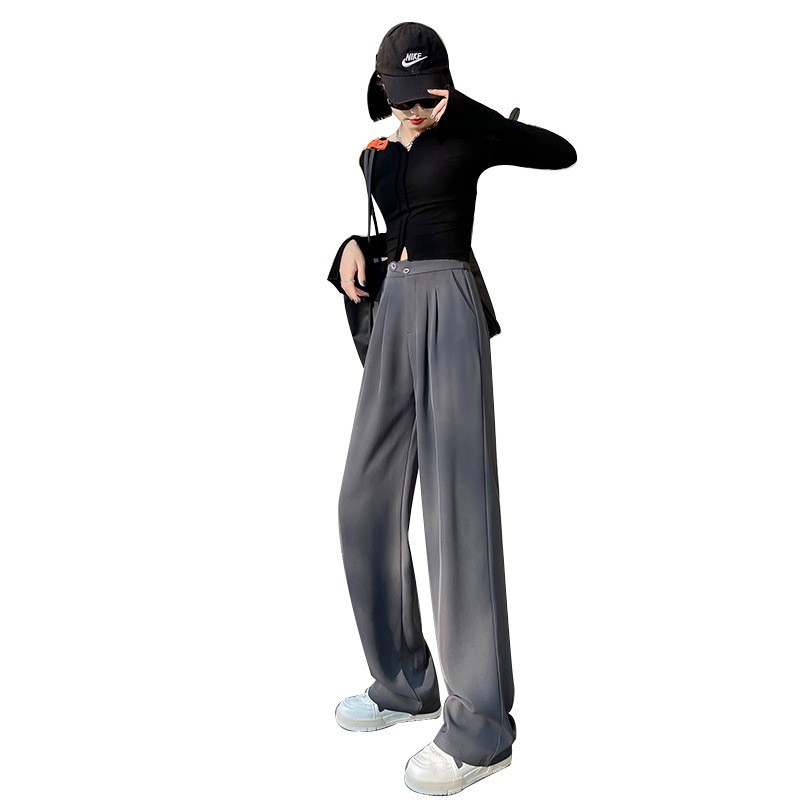 白色阔腿裤女装春季女小个子显瘦垂感直筒裤高腰休闲西装裤