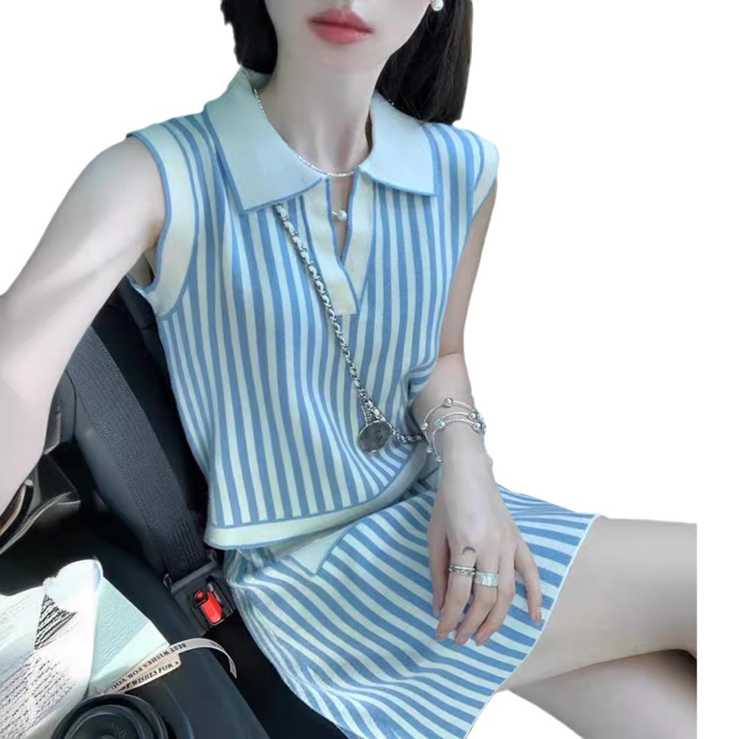 小香风时尚针织套装夏季新款小个子减龄条纹上衣半身裙两件套
