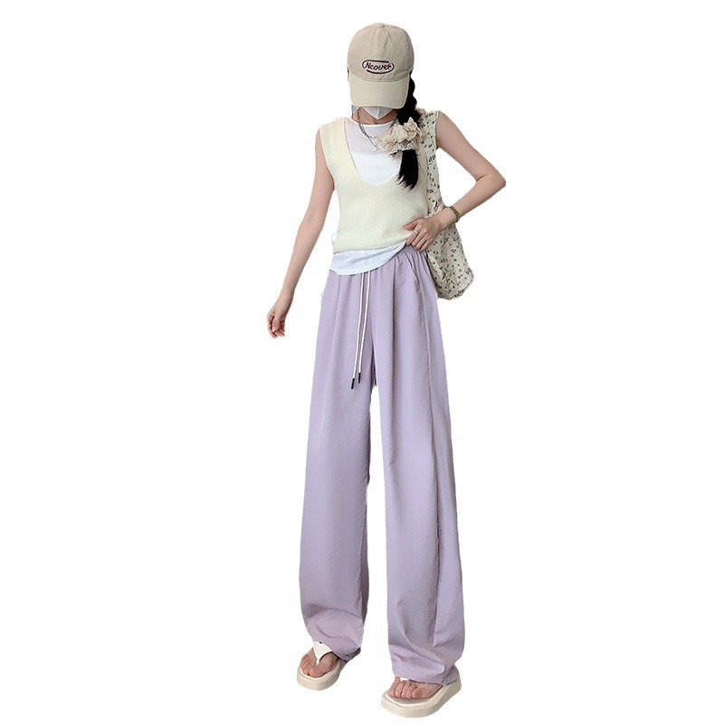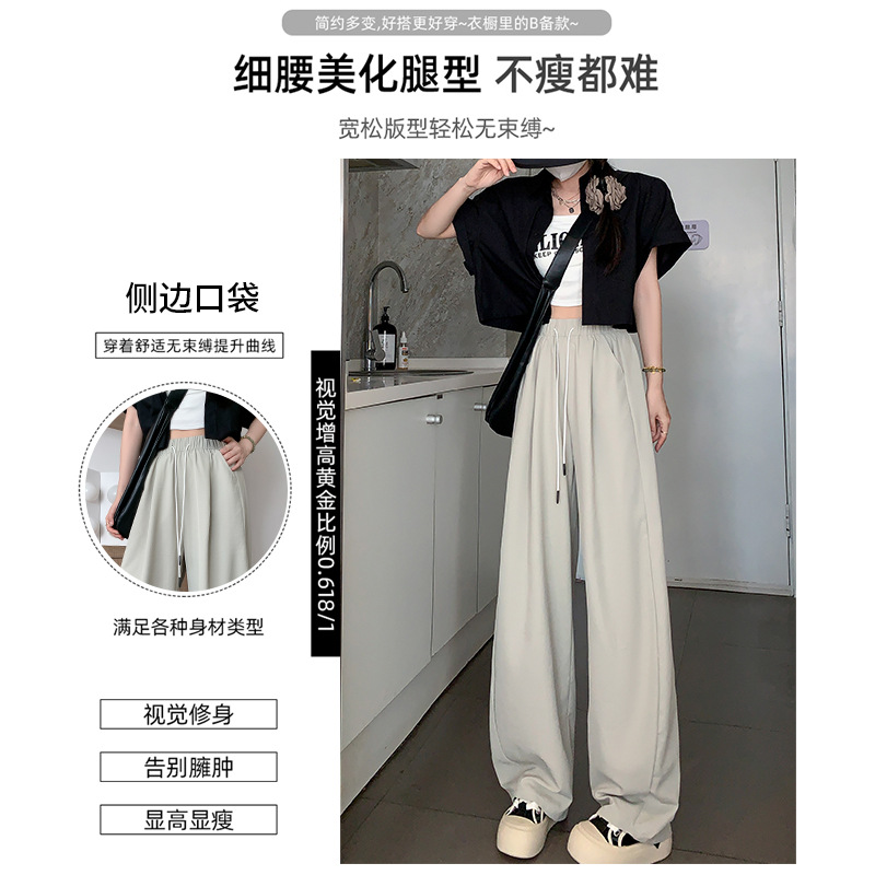 运动弯刀裤女装裤子女夏季宽松垂感显瘦休闲裤高腰速干冰丝阔腿裤
