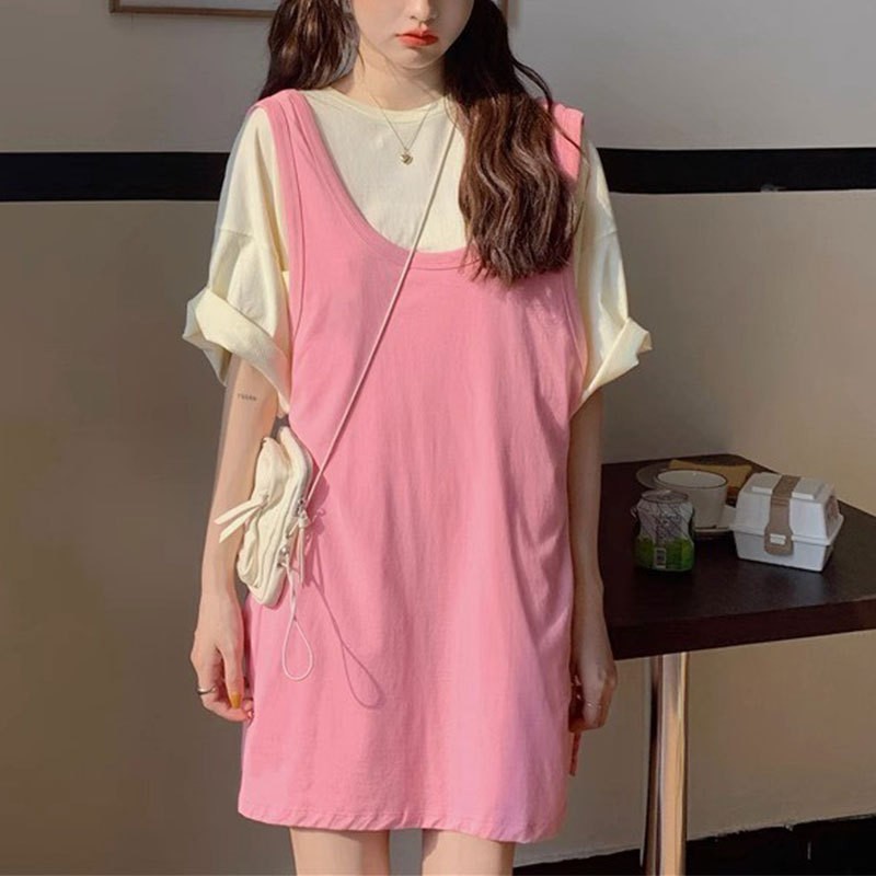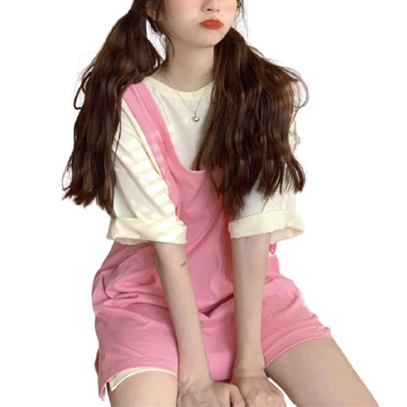 设计感小众法式短裙年新款学院风套装粉色背带连衣裙子女夏季