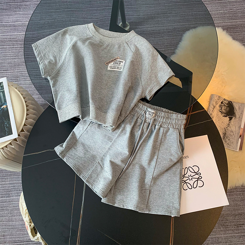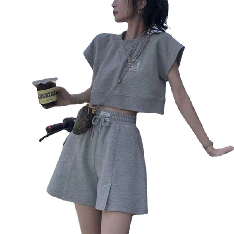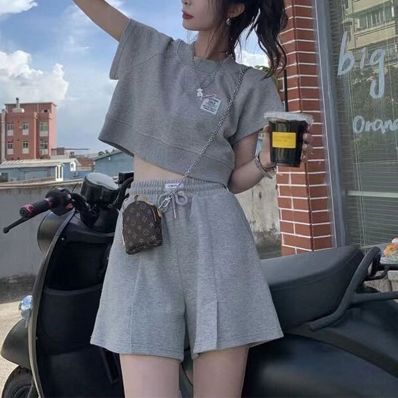 年夏装新款网红炸街减龄小个子休闲运动套装阔腿短裤两件套装