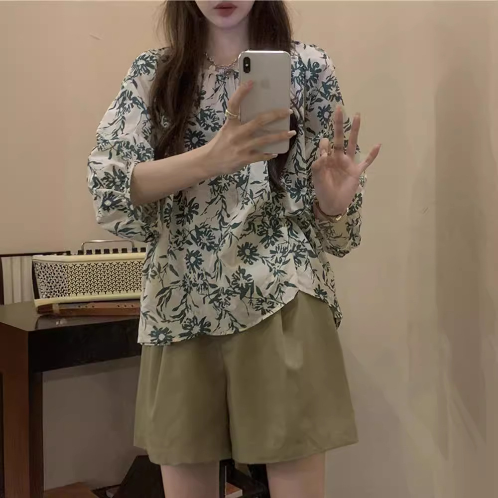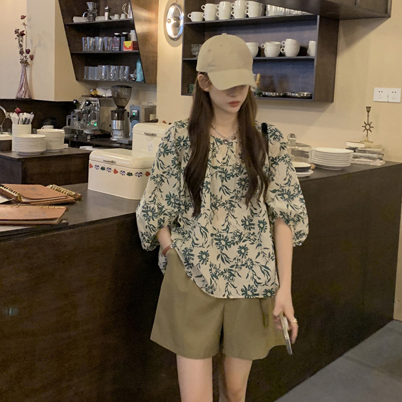 夏季女装新款成套搭配森系风减龄俏皮活泼衬衫阔腿裤两件套装