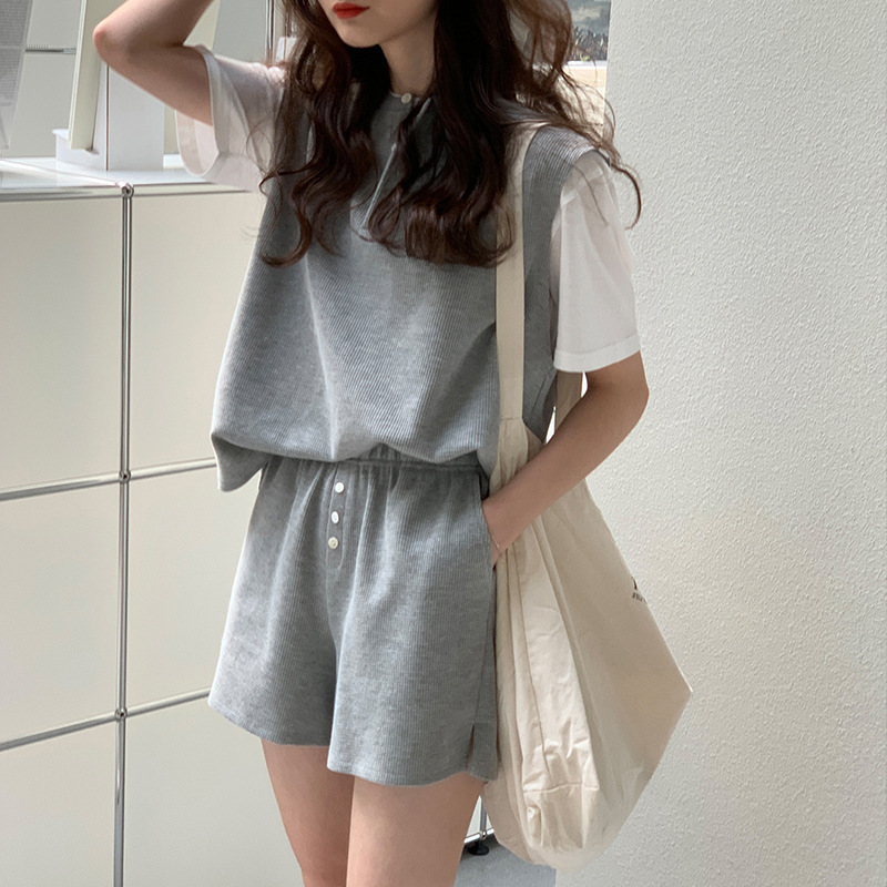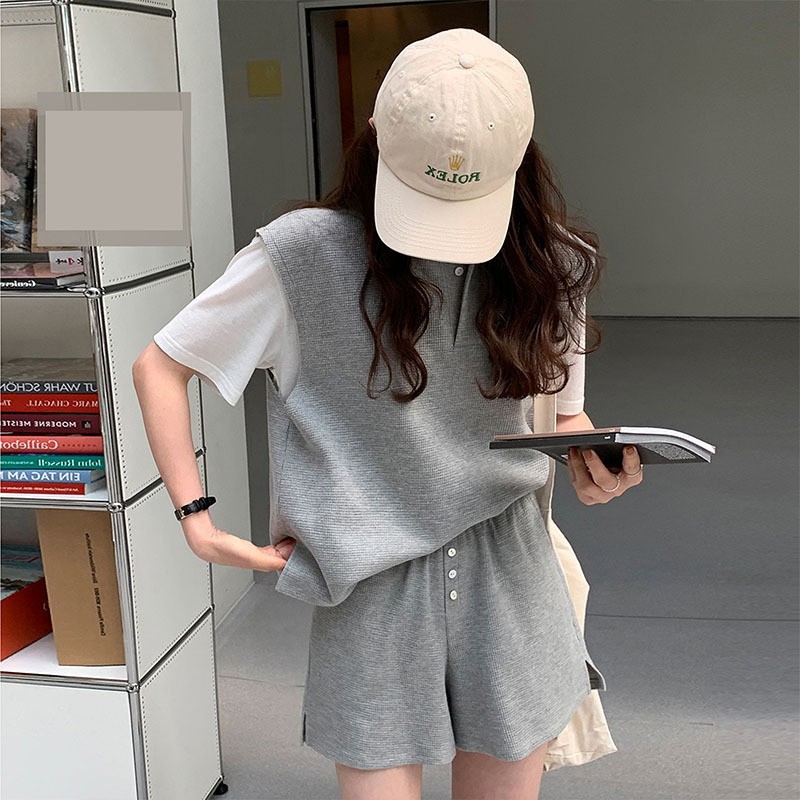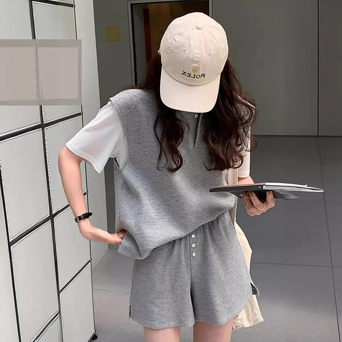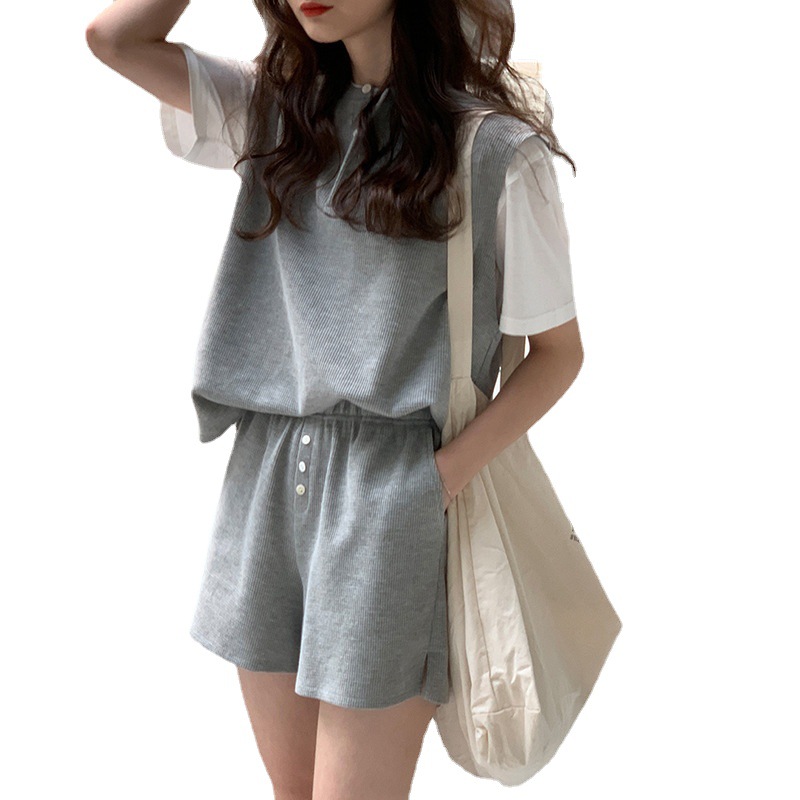夏新款可盐可甜网红小个子减龄炸街时尚套装女上衣短裤三件套