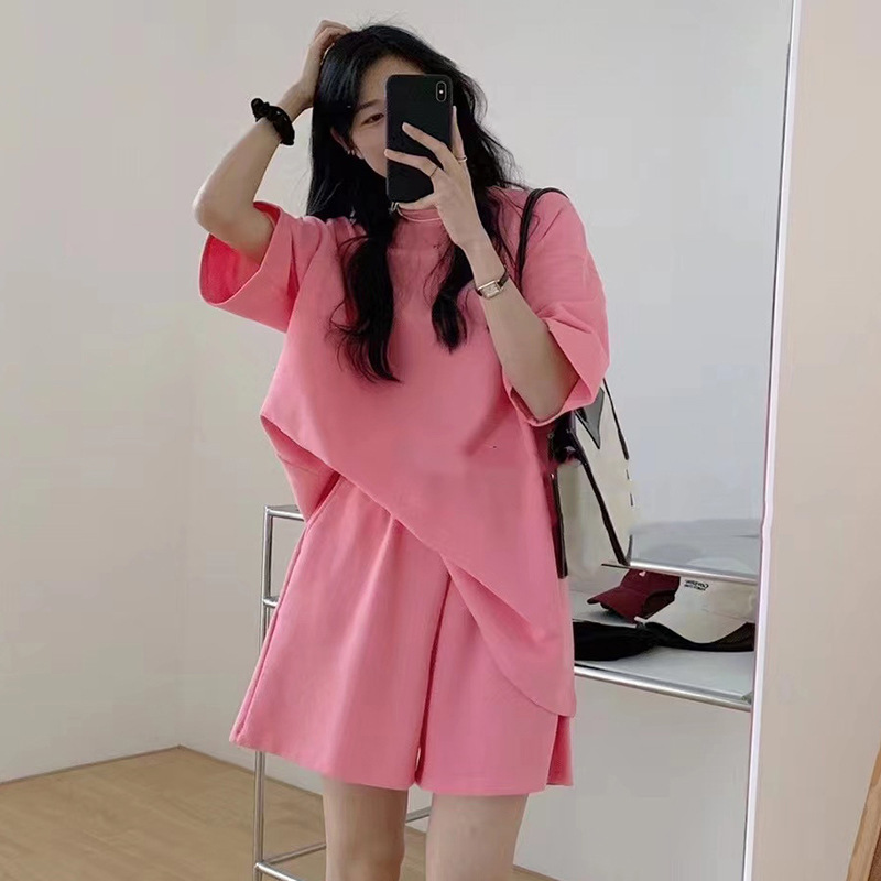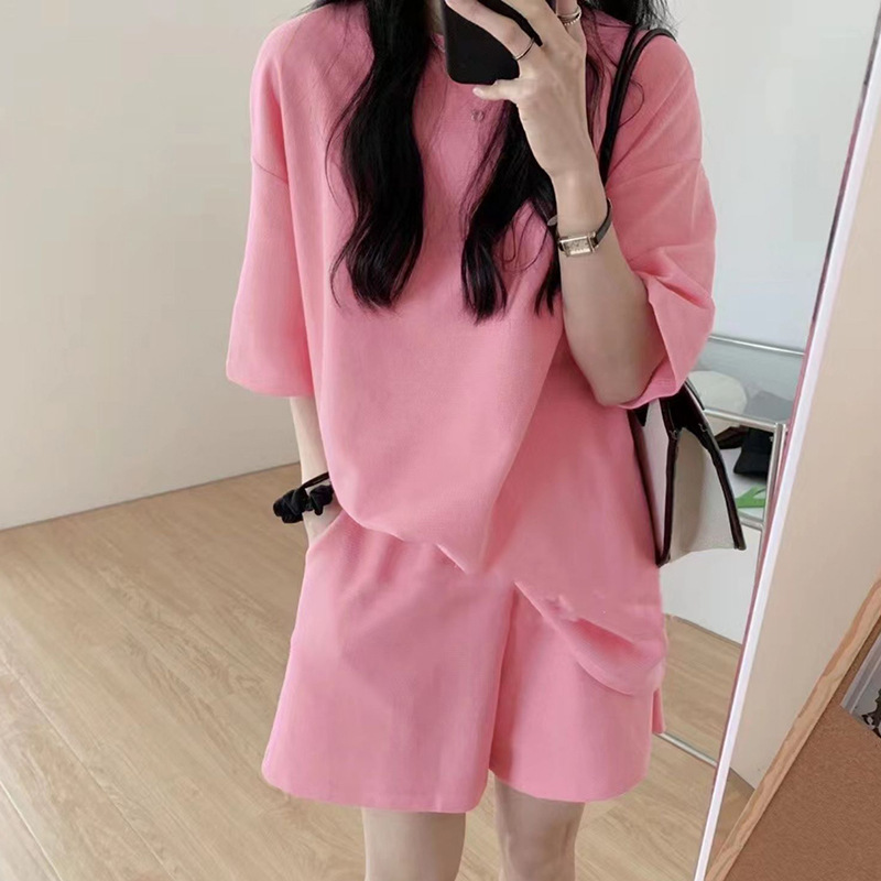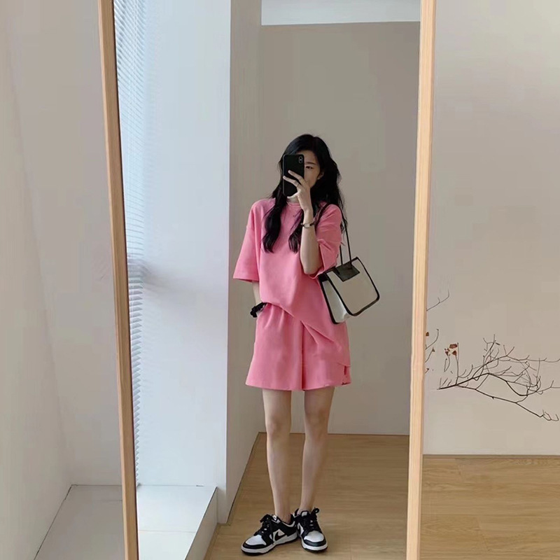 新款夏季韩版休闲短袖套装女学院风宽松百搭短裤运动两件套潮